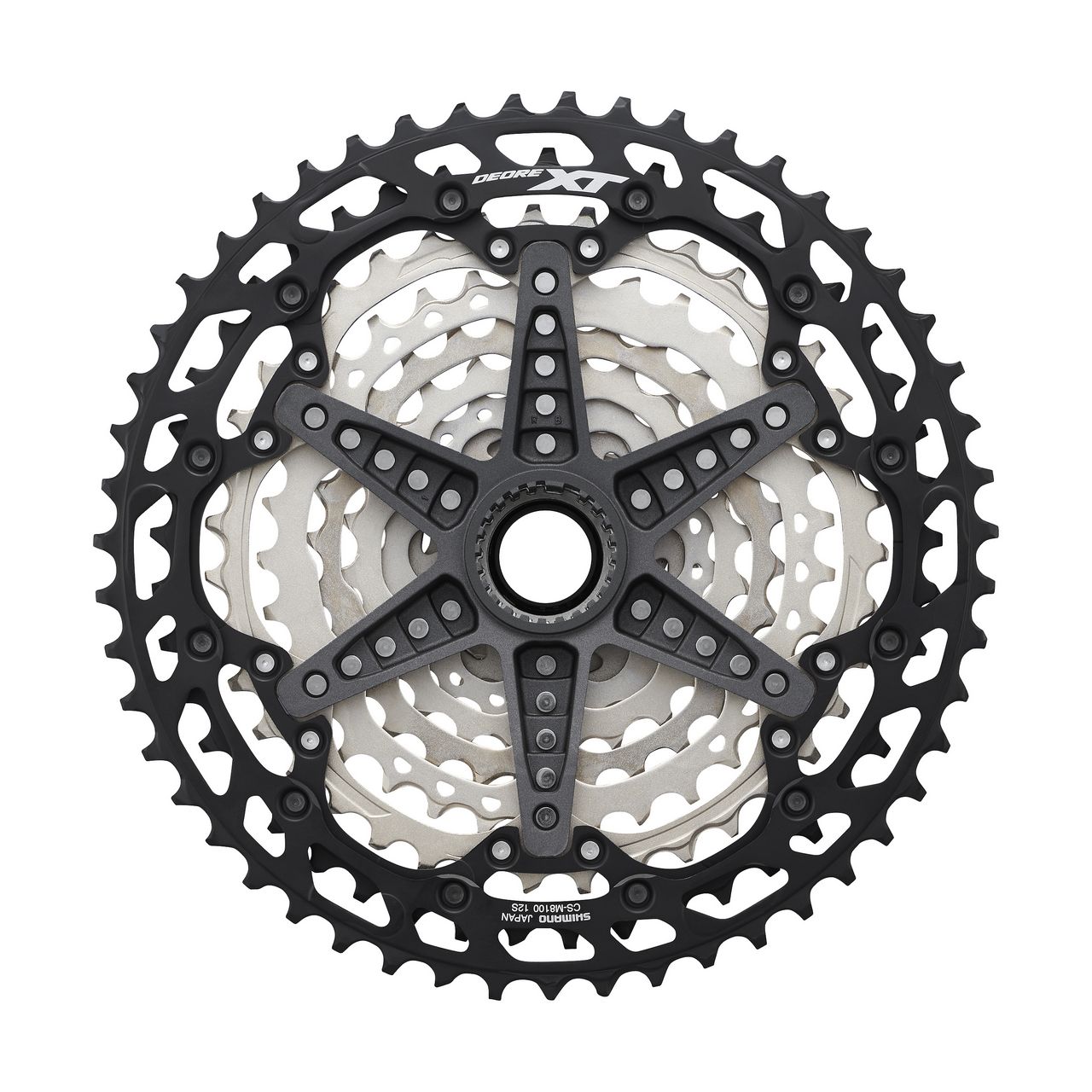 12-rzędowe kasety DEORE XT są kompatybilne z bębenkami piast MICRO SPLINE i występują w zapewniającej ciasne zestopniowanie przełożeń wersji 10-45T oraz 10-51T, oferującej maksymalną rozpiętość. Koronki kaset mają rampy wyfrezowane po obu stronach, zgodnie z technologią HYPERGLIDE+, dzięki czemu zmiany przełożeń wspomagane są w obu kierunkach, a całość działa wyjątkowo cicho. W obu wersjach na aluminiowych pająkach osadzono dziesięć stalowych koronek, a dwie największe wykonane są z aluminium, takie połączenie zapewnia optymalną wagę i wytrzymałość. CS-M8100 10-51T waży 470g, a mniejsza wersja 10-45T – 461g.