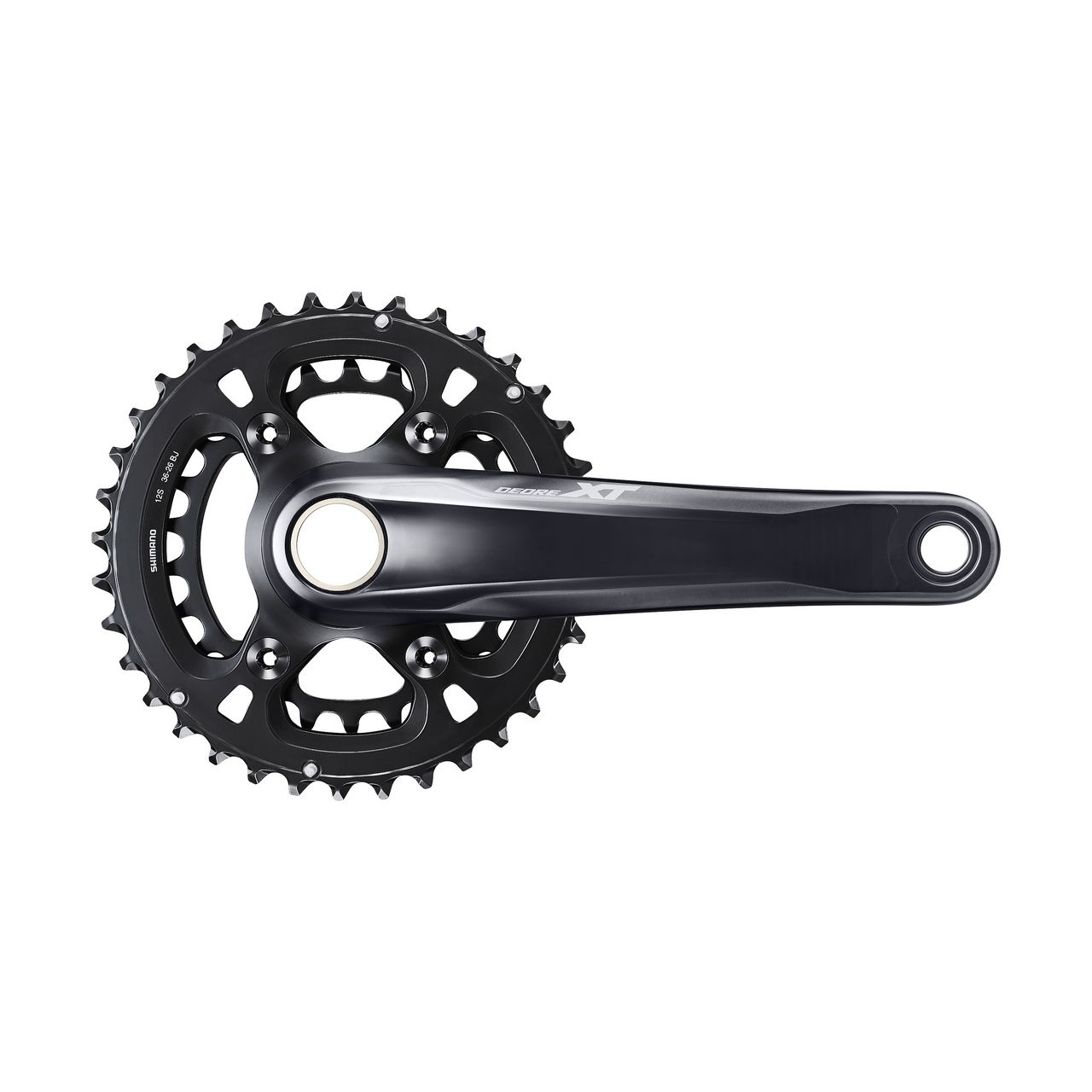 Nowa korba DEORE XT 1×12 jest wykuta z aluminium przy użyciu znanej tylko Shimano technologii HOLLOWTECH II, co oznacza, że jej ramiona są puste w środku, a supersztywna oś zintegrowana jest z prawym ramieniem. Zęby tarczy są na przemian wąskie i szerokie, Dynamic Chain Engagement+, bo tak nazywa się ta konstrukcja, zapewnia doskonałe trzymanie łańcucha przy jednoczesnej płynnej i cichej pracy napędu. Tarcza mocowana jest bezpośrednio do ramienia w prosty i szybki sposób, przy użyciu jednej centralnie umieszczonej nakrętki i może mieć 28, 30, 32, 34 lub 36 zębów. Wymiennie stosować można również tarcze serii XTR i SLX, a długość ramion wynosić może 165, 170, 175 lub 180mm. Korby Deore XT dostępne są w wersji z trzema liniami łańcucha: