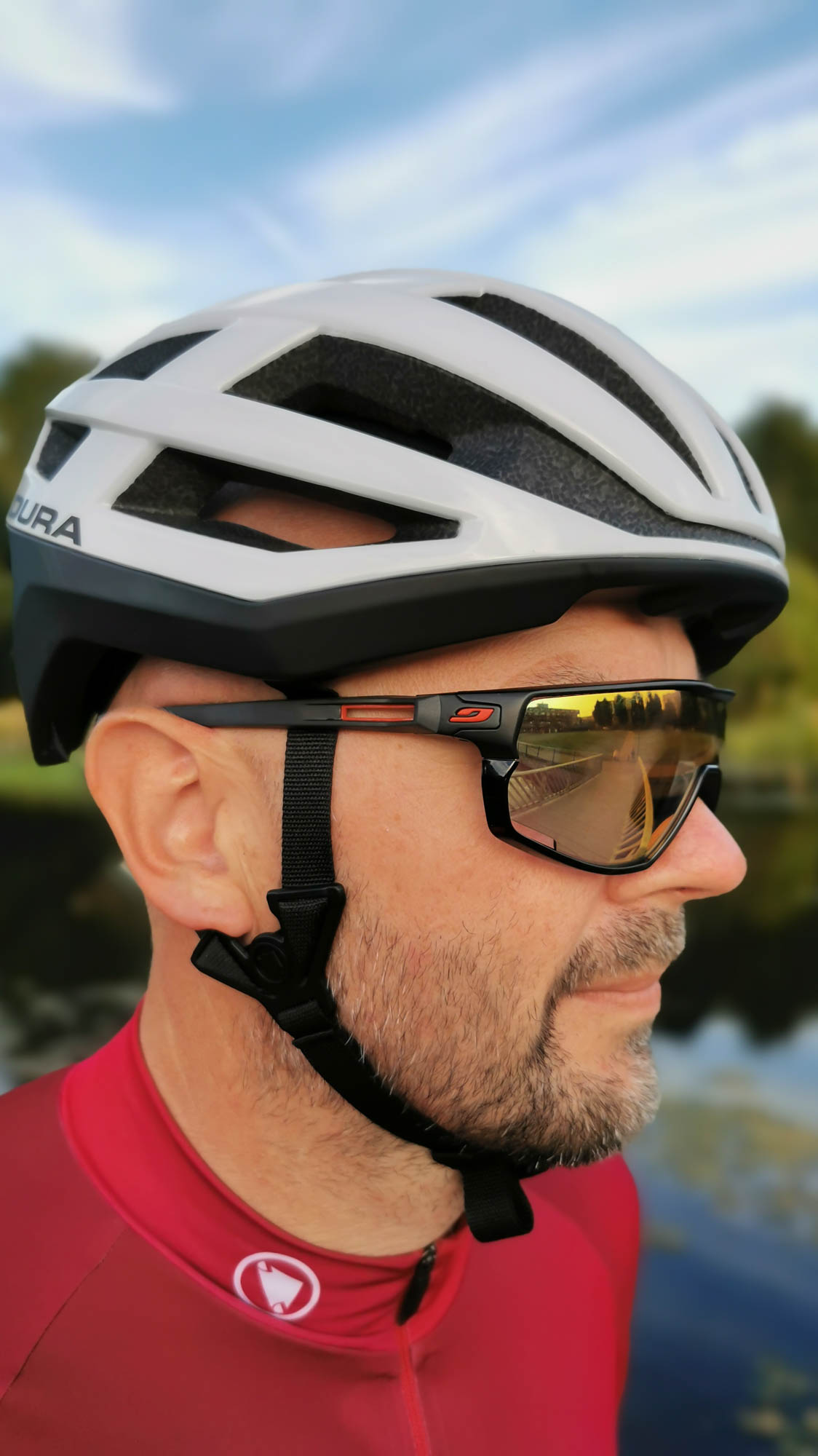 To co najważniejsze w tego typu okularach to jak one działają przy zmiennych warunkach pogodowych, jak reaguje soczewka Julbo Reactiv na światło, jak przyciemnia się i ogranicza dopływ światła. Jeżeli napiszę szybko i nie zauważalnie to zabrzmi to co najmniej jako coś trudne do zweryfikowania… ale tak jest! Soczewka reaguje w sposób intuicyjny, naturalny, co jest bardzo przyjemne dla oka, ponieważ oko w sposób płynny ma ograniczony dopływ nadmiernego światła. W moim modelu zakres pracy wynosi 17% -75% co oznacza, że w ostrym słońcu Italii czy też Chorwacji 75% zatrzymanego światła może być zbyt małą wartością, ale na warunki środkowo europejskie w moim przypadku są wystarczające. Soczewka REACTIV Photochromic Light Amplifier 1-3 ma wybarwienie w kolorze żółtym i odbija światło. Dolny zakres 17% oznacza, że nie mamy podczas zmroku przeźroczystej/czystej soczewki, a jest ona lekko przyciemniona (także zabarwiona na lekką poświatę żółtą). O ile lekkie przyciemnienie podczas wczesnej fazy zmroku lub pochmurnej pogody jest ok, o tyle w nocnej jeździe możesz czuć lekki dyskomfort. Parowanie, skraplanie i inne paraprzygody w tym modelu nie występują. Wysoko postawiona poprzeczka dla innych producentów.