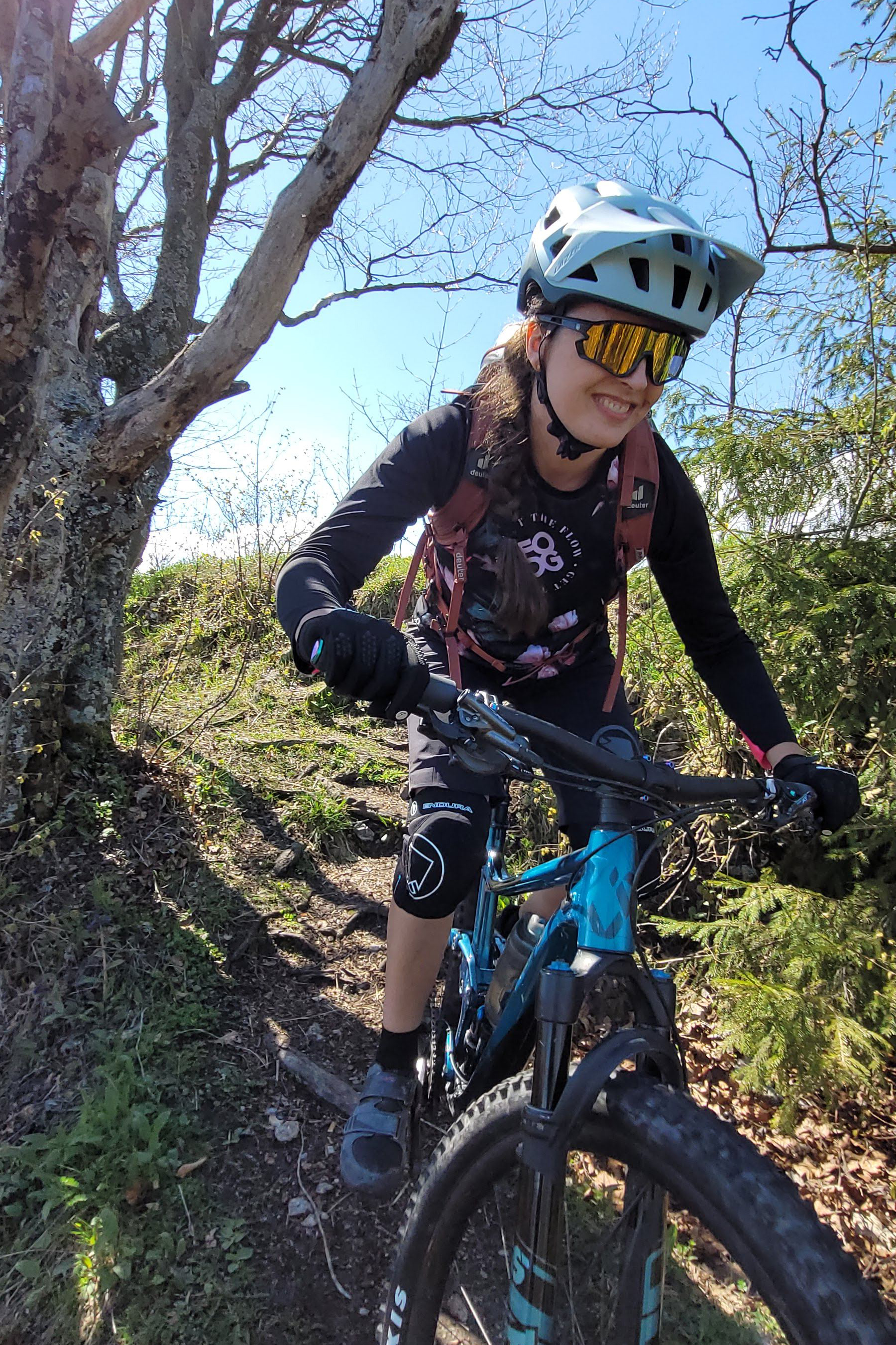Kask ten posiada również podnoszony daszek, który można łatwo regulować podczas jazdy. To pozwala na lepszą widoczność na szlaku i zapewnia miejsce na noszenie gogli. Coyote jest dostępny aż w sześciu kolorach: biało-czarnym, czarnym, jasnoniebieskim (nasz model), titanium (grafitowy) oraz ciemnozielony i pomarańczowo-zielony.