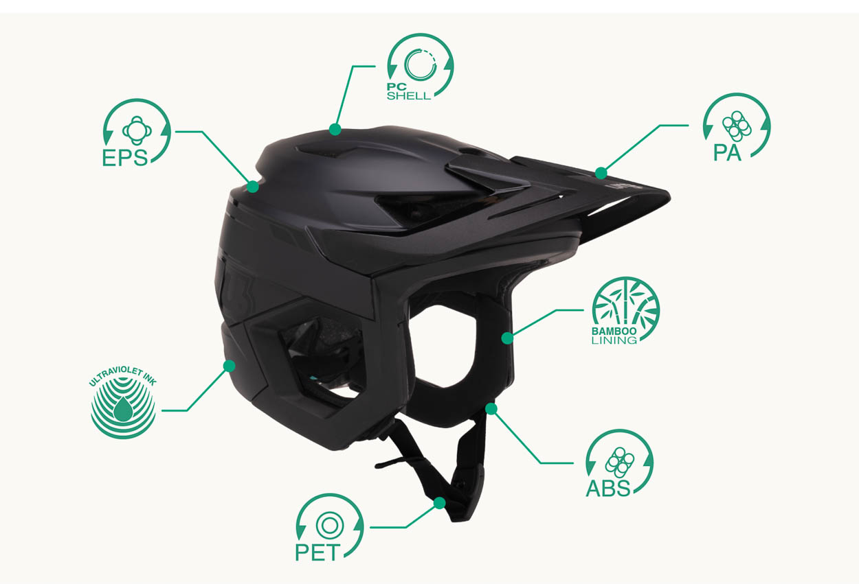 - PC z recyklingu – Skorupa z poliwęglanu pochodzącego z recyklingu pozwala w pełni produkować kaski z materiałów wtórnych, zachowując wysoką ochronę, choć kolorystyka ogranicza się do ciemnych odcieni.