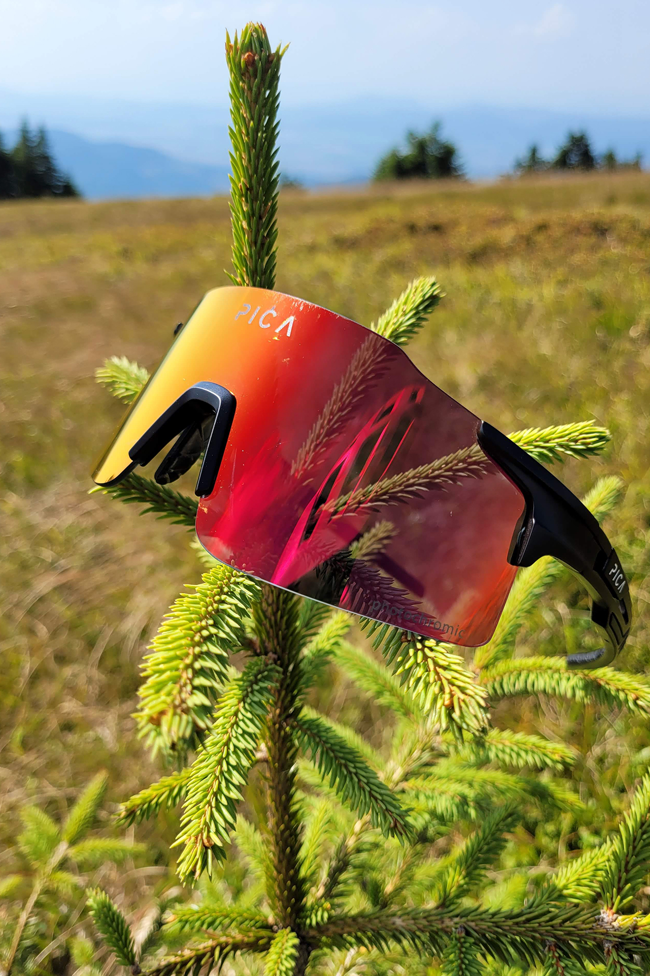 Szkła w tym modelu są fotochromowe (kategoria 0-2). Są więc bardzo lekko przyciemniające się, a w słabym świetle totalnie przezroczyste – nie da się ukryć że bardzo przydatne na tegoroczne lato. PICA ORRU również zapewnia bardzo szerokie pole widzenia przez brak ramek. Zauszniki mają też otwory wentylacyjne.