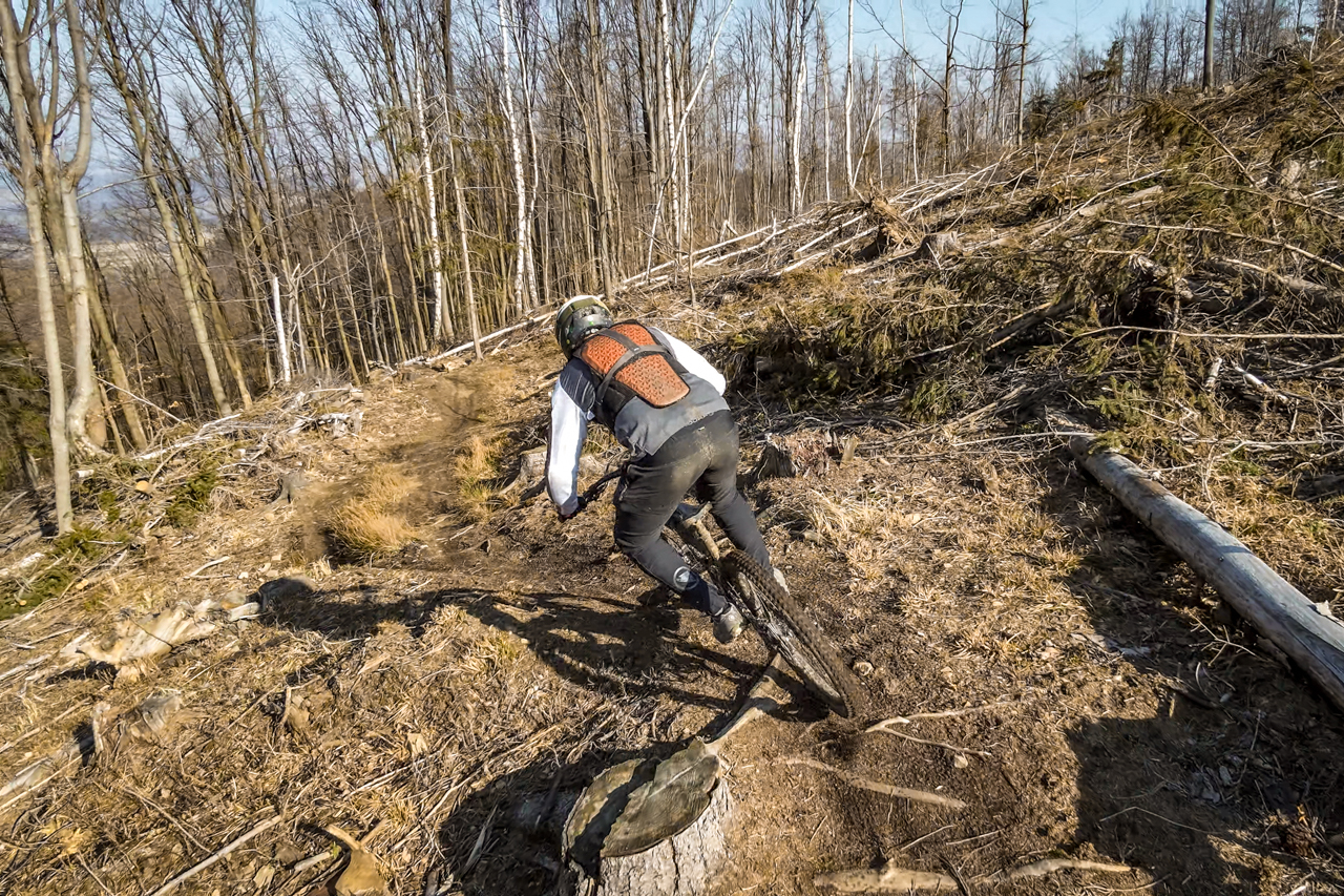 Razem z kierownicą i mostkiem otrzymałem do testu od firmy Gregorio 2 komplety chwytów. Jeden 31 mm i jeden 34 mm. Cieńszy wleciał do trailówki, którą głównie używam do latania po Mazowszu, dojazdów do pracy i ewentualnie bardziej wycieczkową jazdę. Jest wygodnie na tyle, że jadąc sobie na luzie nie muszę zakładać rękawiczek. Grubszy wariant trafił docelowo do endurówki, ale z racji, że testowy elektryk ma średnio wygodne chwyty, to ostatnio podmieniłem je na właśnie na Chestery w wersji 34 mm. Po całym dniu jazdy po Myślenickich enduro ścieżkach (3000 m w pionie…), mogę potwierdzić że gripy Race Face Chester zdecydowanie poprawiły komfort i zredukowały zmęczenie dłoni. Trzymanie jest pewne i komfortowe. Wcześniej na mojej endurówce, na otwarciu sezonu w Srebrnej Górze po 9 zjazdach wykończyło mnie bardziej ogólne zmęczenie niż jakiś konkretny element. Test będzie kontynuowany, a całościowo po sezonie pokażę i opowiem jak sprawowały się wszystkie przekazane komponenty od Race Face. Zobaczymy jak miękka mieszanka zniesie próbę czasu.