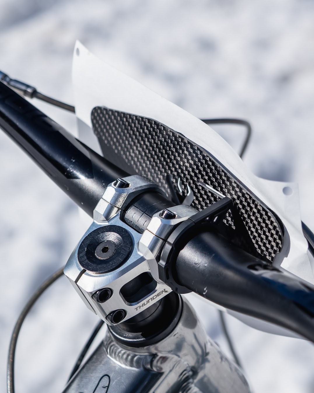 Ares to minimalistyczny, lekki i przemyślany zestaw składający się z cienkiej płytki z włókna węglowego oraz aluminiowej obejmy montowanej bezpośrednio na kierownicy. Ta kombinacja sprawia, że uchwyt wygląda jak element fabrycznego kokpitu, a nie jak coś dorzucone na ostatnią chwilę. Carbonowa płytka została zaprojektowana tak, aby współgrać z kształtem większości numerów i przyjmować część siły uderzenia – dzięki temu wszystko trzyma się stabilnie, a całość przenosi mniej drgań i ma większe szanse przetrwać przypadkowe spotkanie z gałęzią czy kamieniem. Aluminiowa obejma zapewnia pewne i łatwe mocowanie, minimalizuje kolidowanie z przewodami i występuje w wersjach dla kierownic 31.8 mm oraz 35 mm, dzięki czemu Ares idealnie wpasuje się w każdy nowoczesny kokpit.