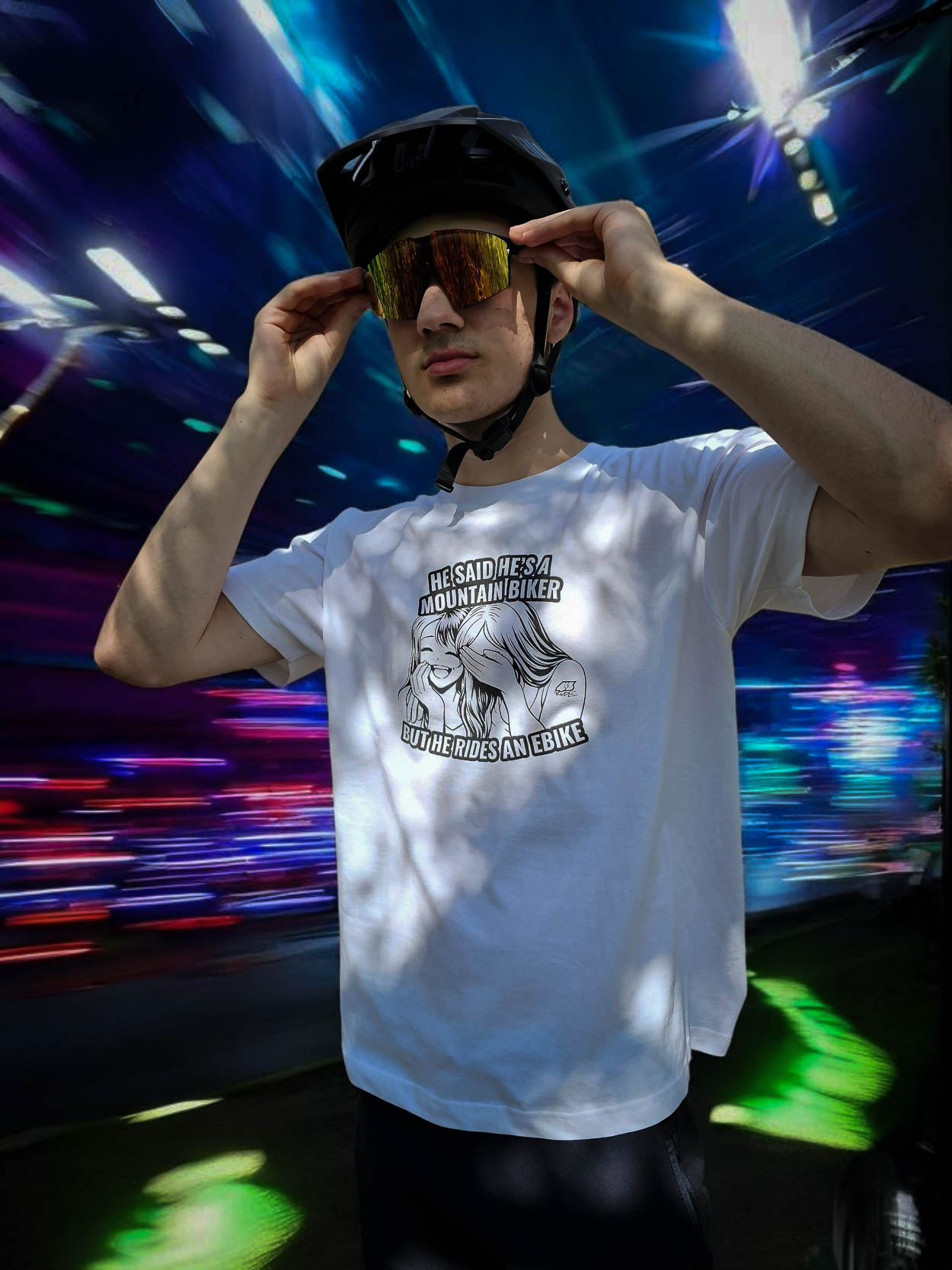 „He said he is a mountain biker but he rides an eBike” to hasło, które od razu wywołuje uśmiech (albo lekkie ukłucie). To ironiczny komentarz do współczesnej kultury rowerowej – idealny dla tych, którzy potrafią podejść do tematu z dystansem.