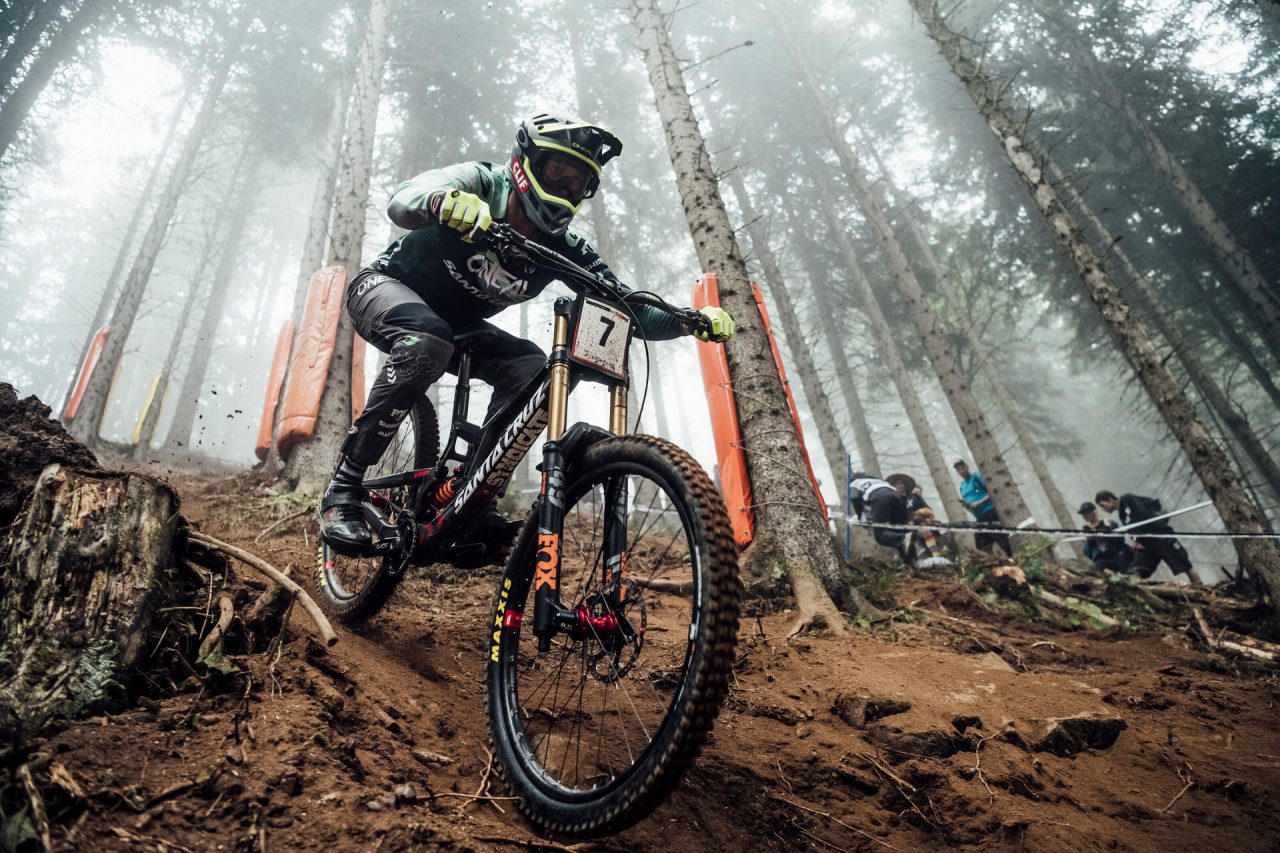 Amaury Pierron, who won in Fort William (SCO) and Les Gets (FRA), qualified in fifth and faced the Downhill showdown as one of the last riders. Pierron became the embodiement of “high risk, high reward” and managed to build his lead more and more with every split. Coming into ‘The Oakley Plunge’, Pierron found one of the fastest lines through the steep sections, which gave him a 3.5 second lead coming into the bottom half of the track. Not even a small mistake in the final sector could take his win away – with a time of 2:49.423, Pierron would demolish Greenland’s until then leading time by 4.3 seconds. While Greg Minnaar, one of the world’s best and most decorated Downhill riders, would have a narrow lead at the top of the track, the technical sections caught him out and the 21-time World Cup winner couldn’t keep up with Pierron. The record holder was able to make up time towards the bottom of the track, but would miss the hot seat by less than a second, finishing the day in second place.