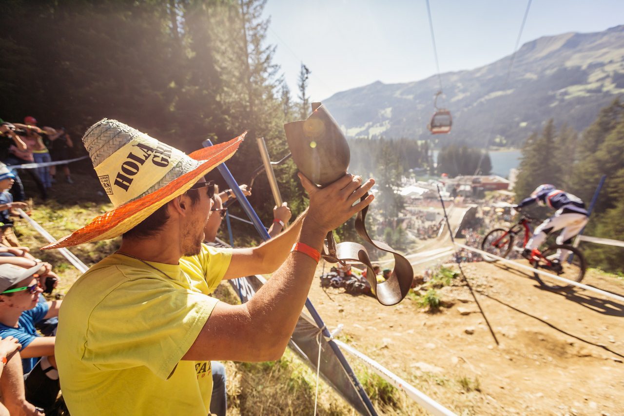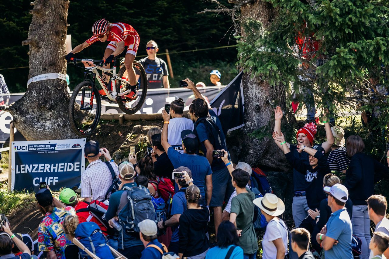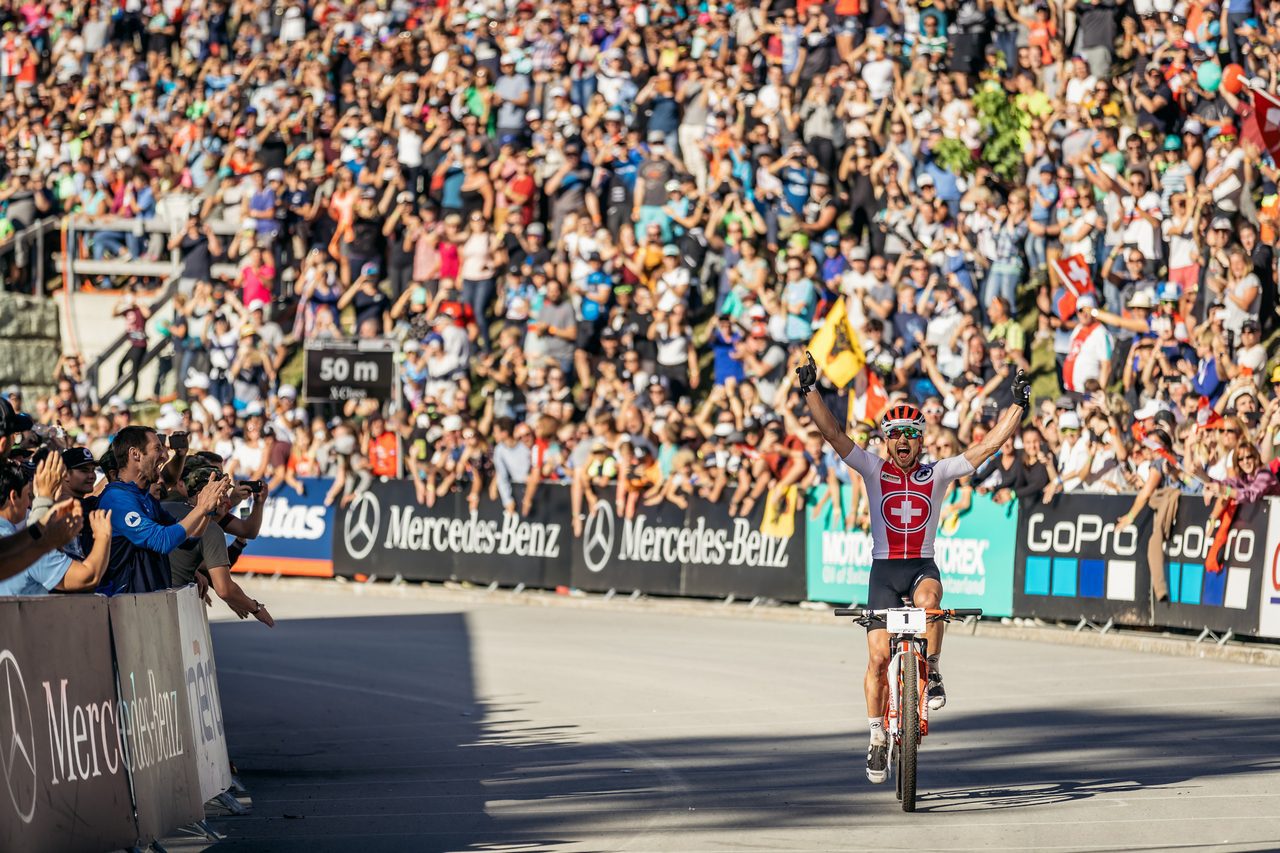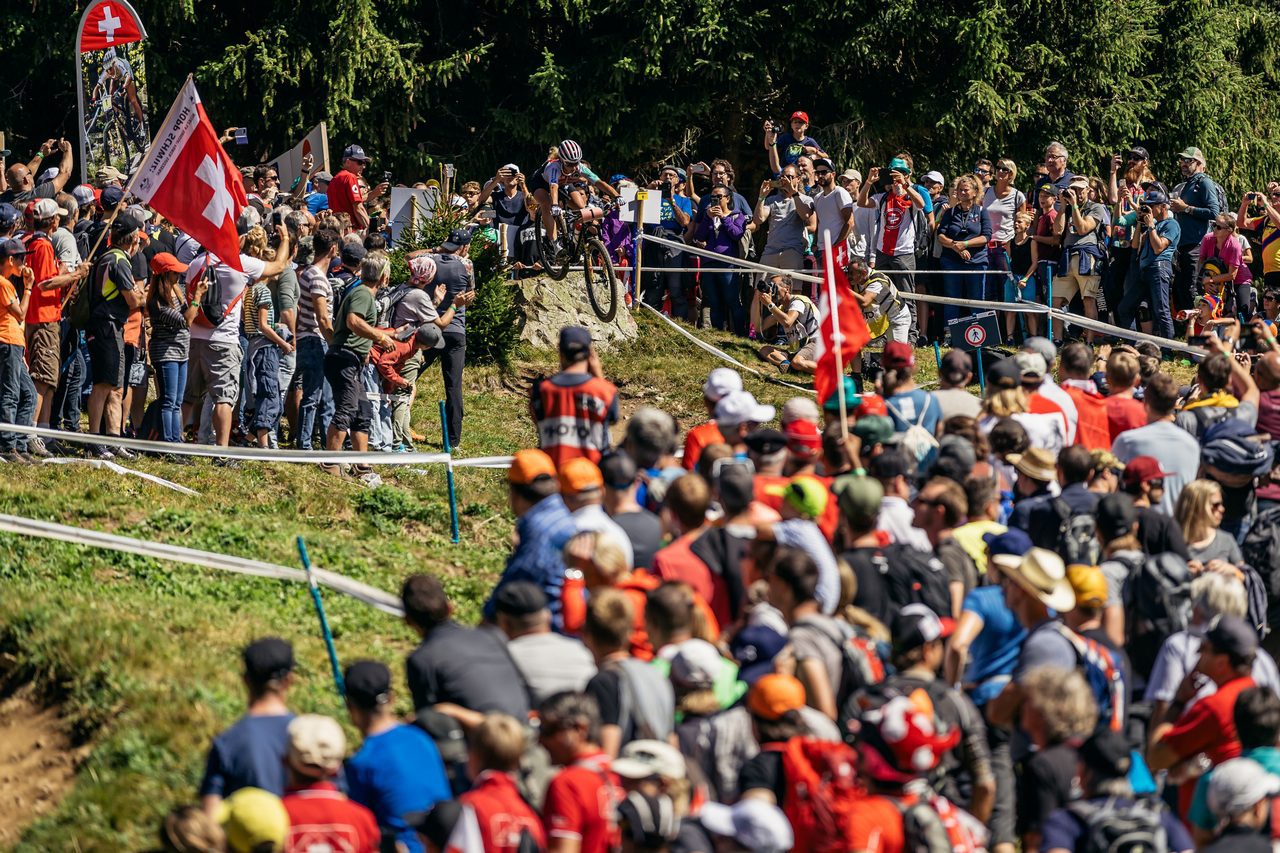 65,000 spectators! The UCI Mountain Bike World Championships last year were record breaking, the biggest event to crown the best in the world to date. Eleven months later the world’s best athletes will be returning to Switzerland for the ninth round of the Mercedes-Benz UCI Mountain Bike World Cup. Both the Downhill and Cross County elite will be battling it out on the STRAIGHTline and Cross Country course leading down and laid out beneath the Rothorn between August 9-11. The event is not only vital to all competitors for World Cup points, but also marks the final contest on European soil before the world’s MTB elite set off on their journey across the pond. The World Cup in Lenzerheide will be the dress rehearsal for reigning champs Rachel Atherton (GBR), Loic Bruni (FRA), Kate Courtney (USA) and local hero Nino Schurter (SUI) for this year’s UCI World Championships in Canada. It wouldn’t be a surprise if the streets actually were deserted with everyone lining the tracks and cheering on the athletes: