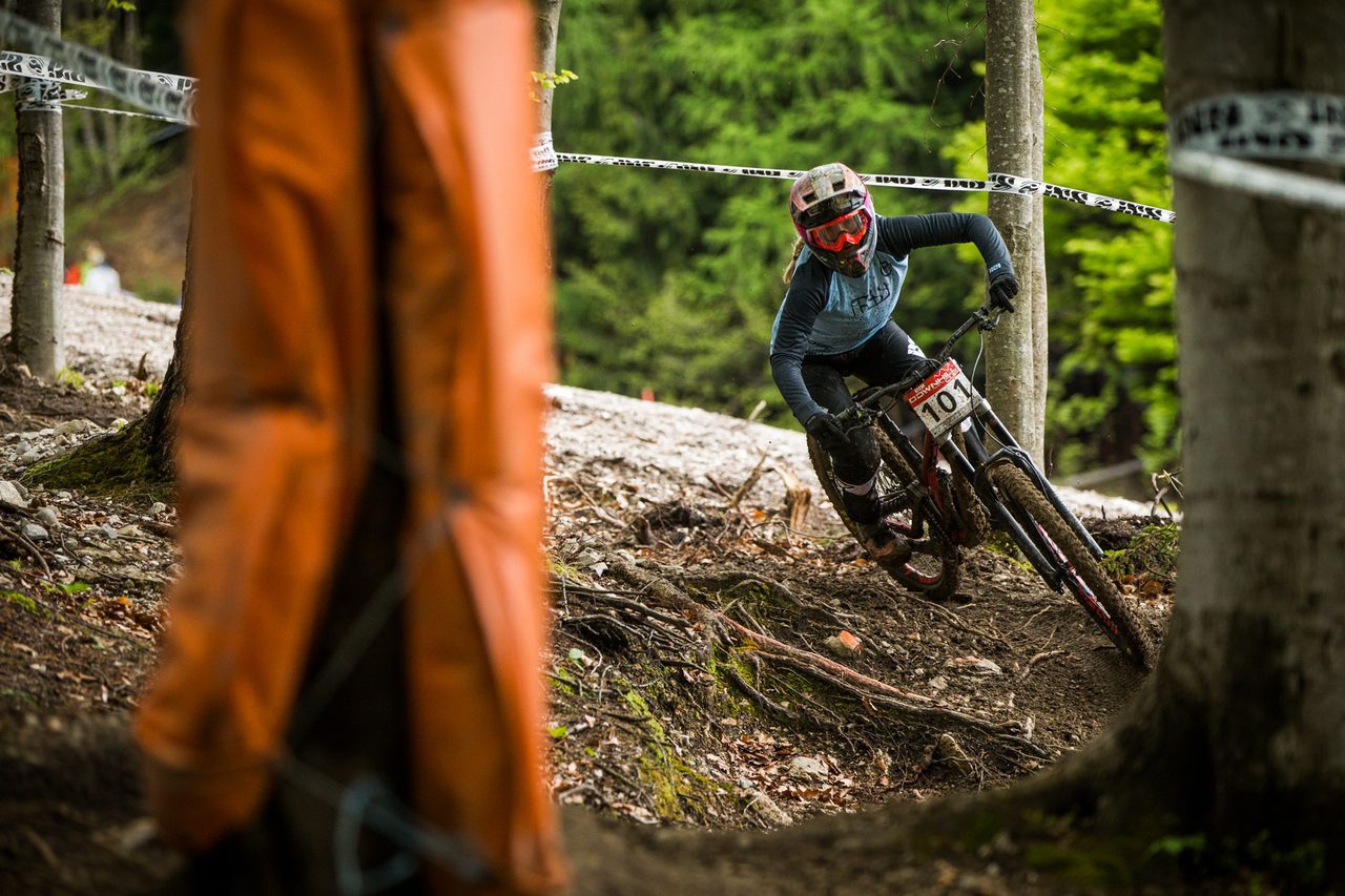 Saturday confronted the riders with cold and wet conditions, but with this schedule there was simply no time to complain. At least St. Peter seemed to be a little more sympathetic towards the riders and so it stopped raining at 8 am for the time being. After one last short training session the qualifications started, leaving Lea Rutz (SUI – iXS Gravity Union) and Matthias Hafner (GER – Bikepark Albstadt) as the fastest riders of the Elite categories.