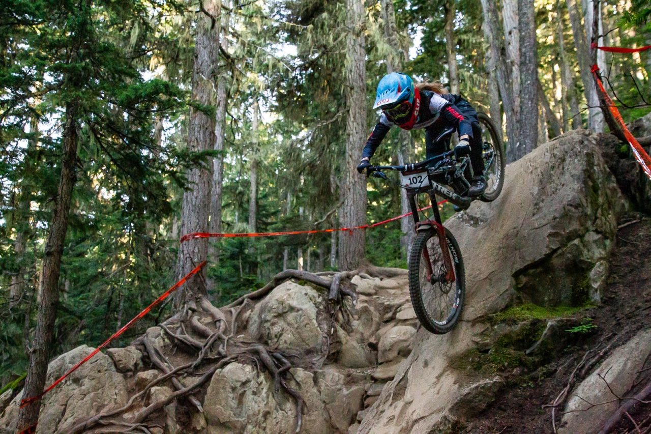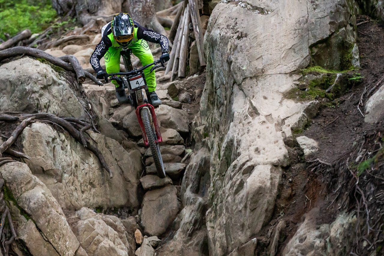 Ropelato is more known for his skills in head-to-head racing, with numerous Crankworx wins in Dual Slalom and Pump Track over the years. The 30+ second races are a stark contrast to today’s winning grind down some of the Whistler Mountain Bike Park’s most technical terrain, a feat he accomplished in 12:36.68.