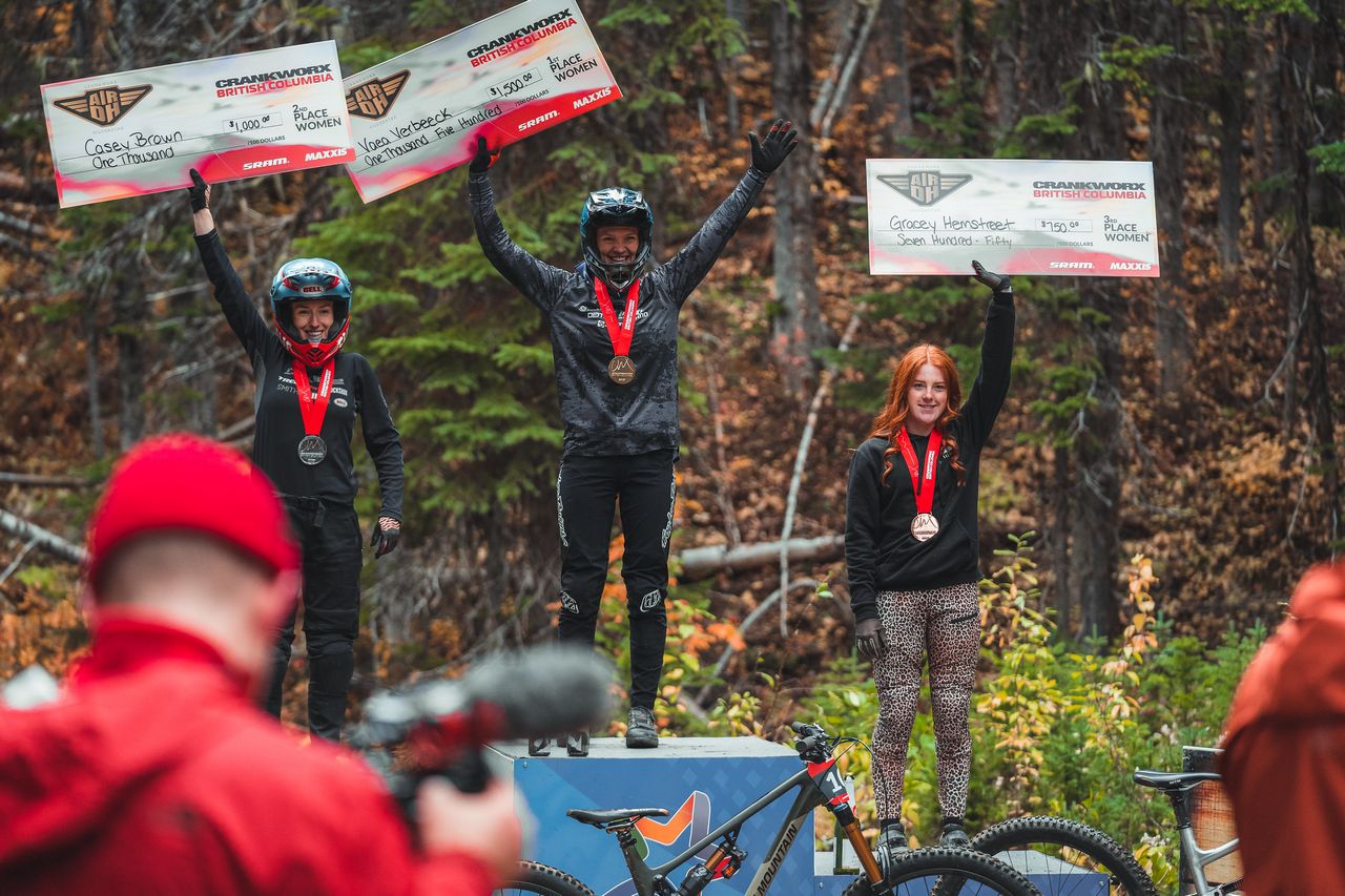 Women’s podium: 2. Casey Brown, 1. Vaea Verbeeck, 3. Gracie Hemstreet / photo: Jake Paddon