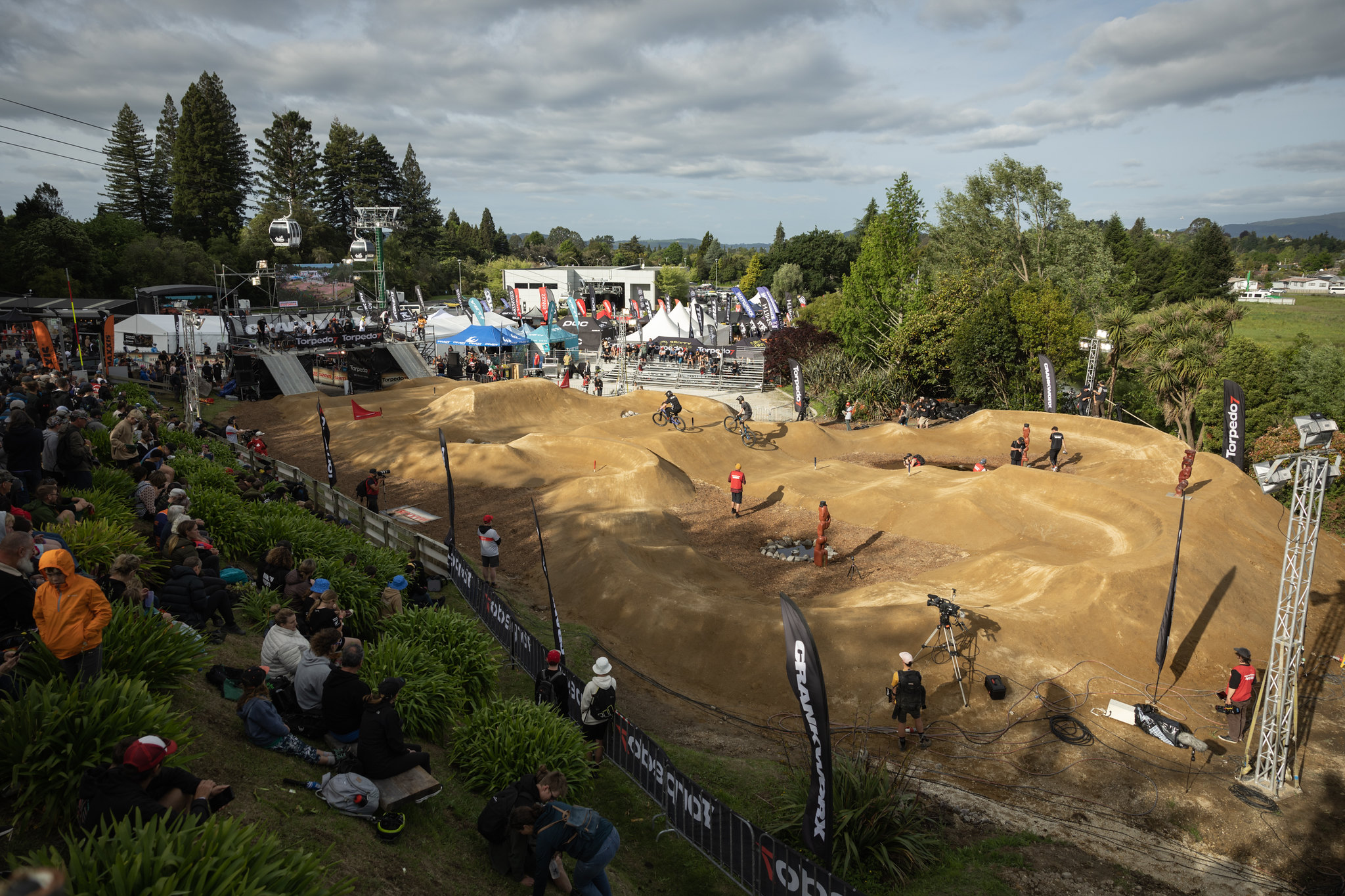 Day seven of Crankworx Rotorua brought spectators an action-packed double header with Specialized Dual Slalom Rotorua in the afternoon followed by Crankworx Rotorua Pump Track Challenge presented by Torpedo7 once the skies started to put on an epic sunset for the riders and fans.