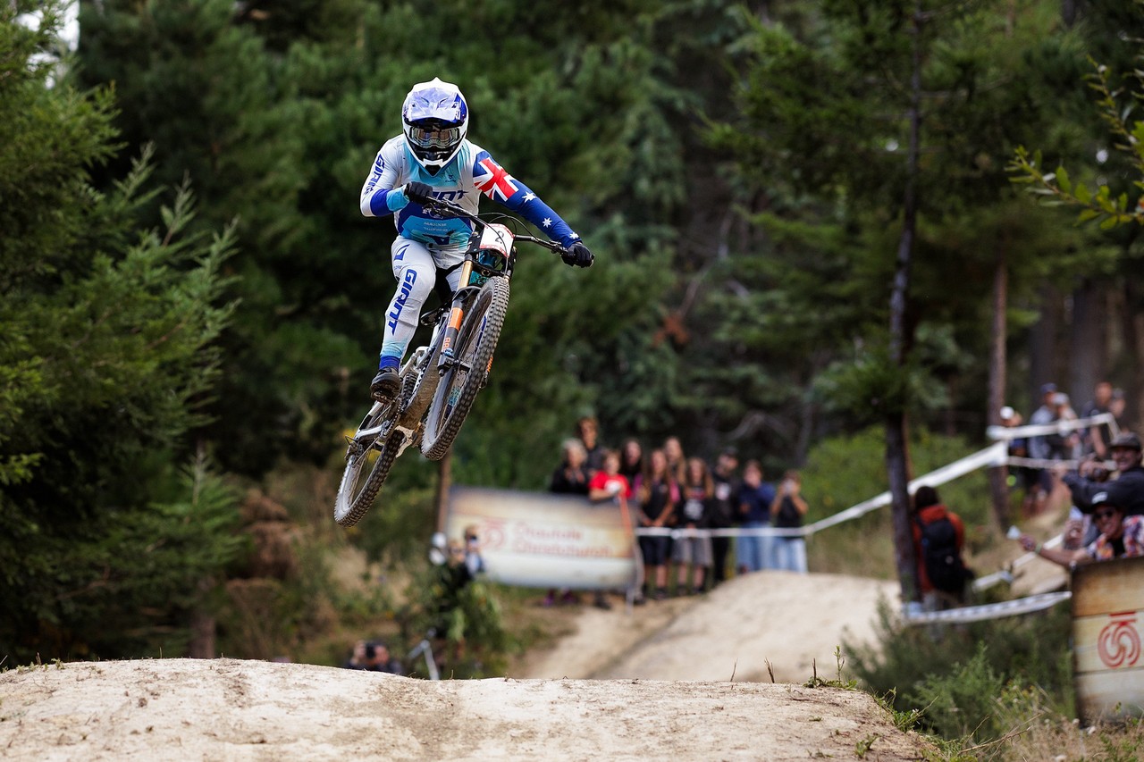 Under blue skies and in front of a sun-soaked crowd that has filled Christchurch Adventure Park all week, the Redemption DH Finals delivered both drama and dominance. Seeding yesterday saw Jenna Hastings and Luke Meier-Smith take the top spots; and today, both defended them.