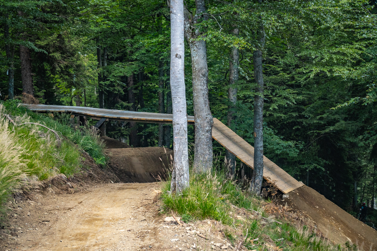 This is also where the previous versions of the Kope Bike Park trails were located. The Pungart Zone is served by a chairlift and currently features five trails. The gentle slope of the terrain is perfect for flow trails and jump lines. It’s also here that you can admire some of the largest jumps in Europe, prepared for the FEST Series event. This line is normally closed, but the following trails are open to the public: