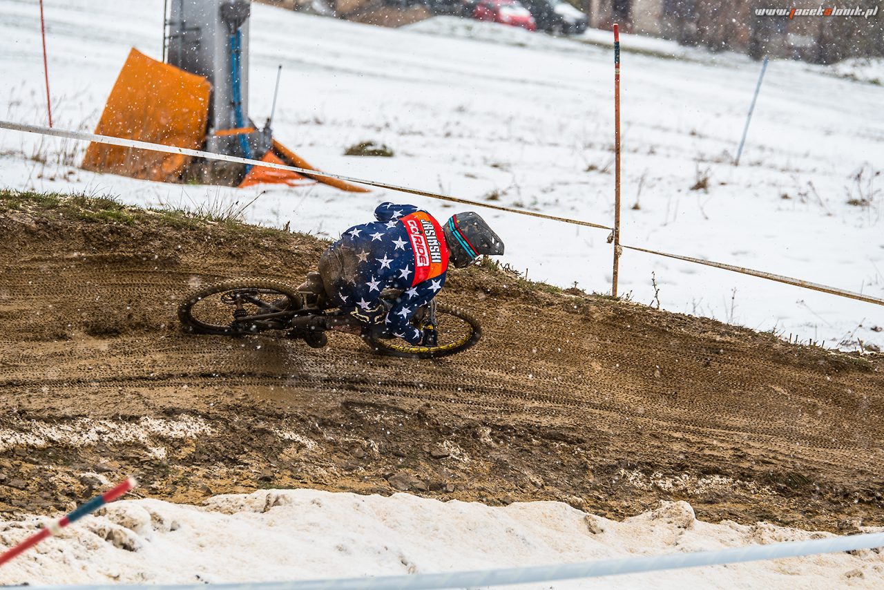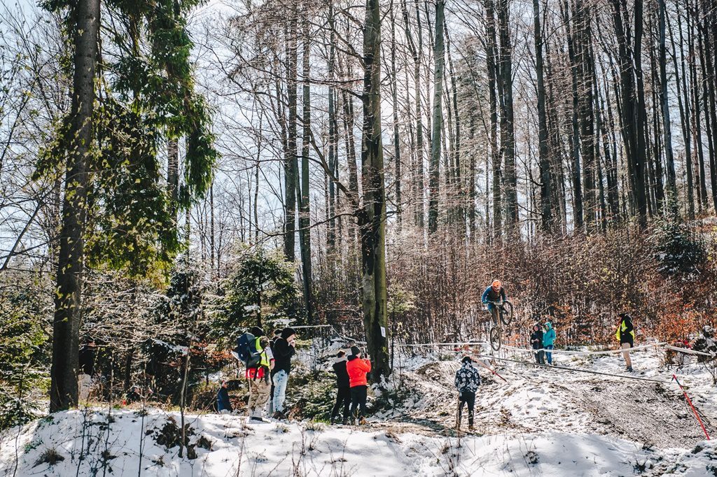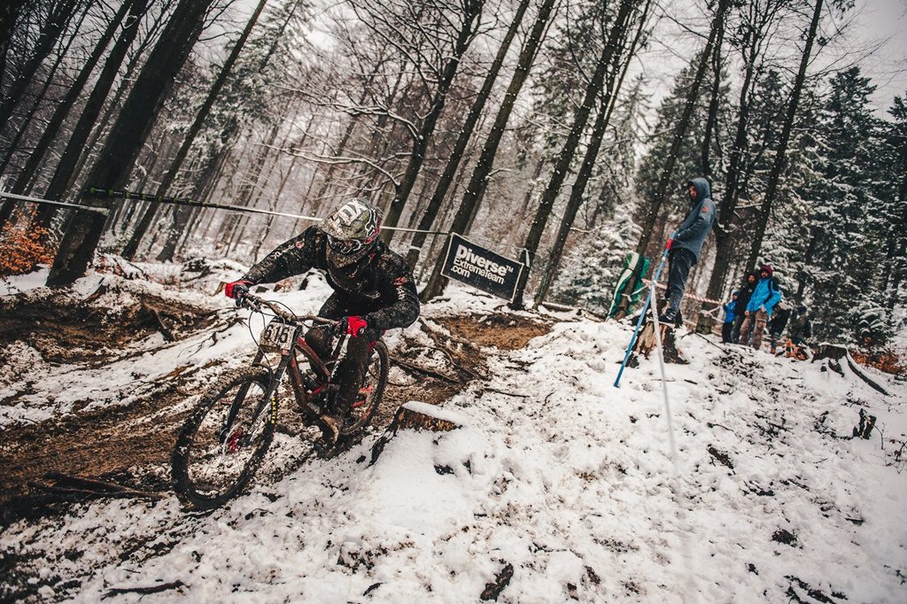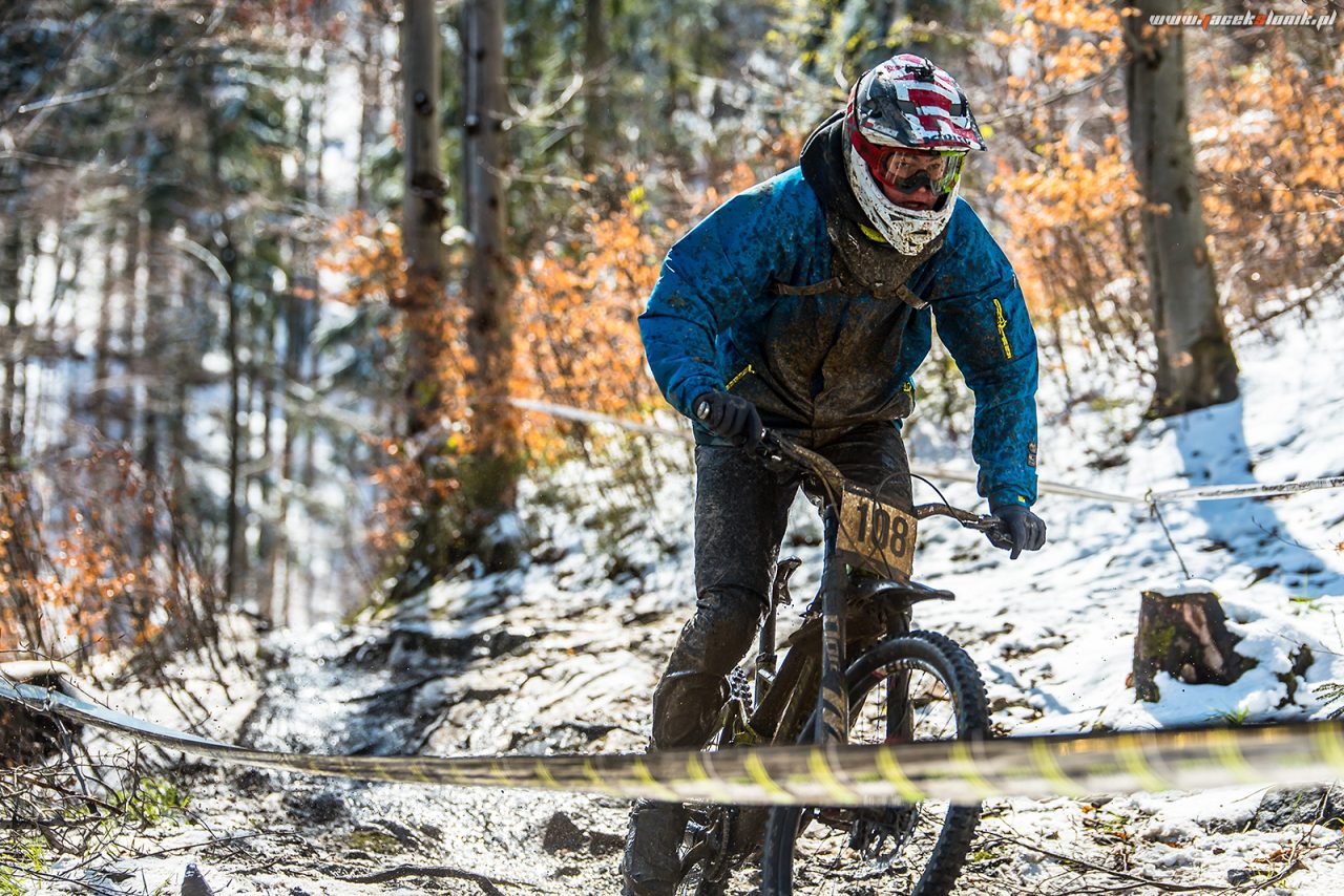 W miniony weekend w Wiśle odbyła się wyjątkowa, inauguracyjna runda Pucharu Polski w zjazdach na rowerze. Iście zimowa aura sprawiła, że niemal setka zawodników zmierzyła się nie tylko z górą Stożek, ale także ze śniegiem. Pomimo tego riderzy pokazali klasę, a rywalizacja była zacięta. Świadczą o tym wyniki osiągnięte przez najszybszych zawodników w klasach Elita i Junior, które dzieliły zaledwie setne sekundy.