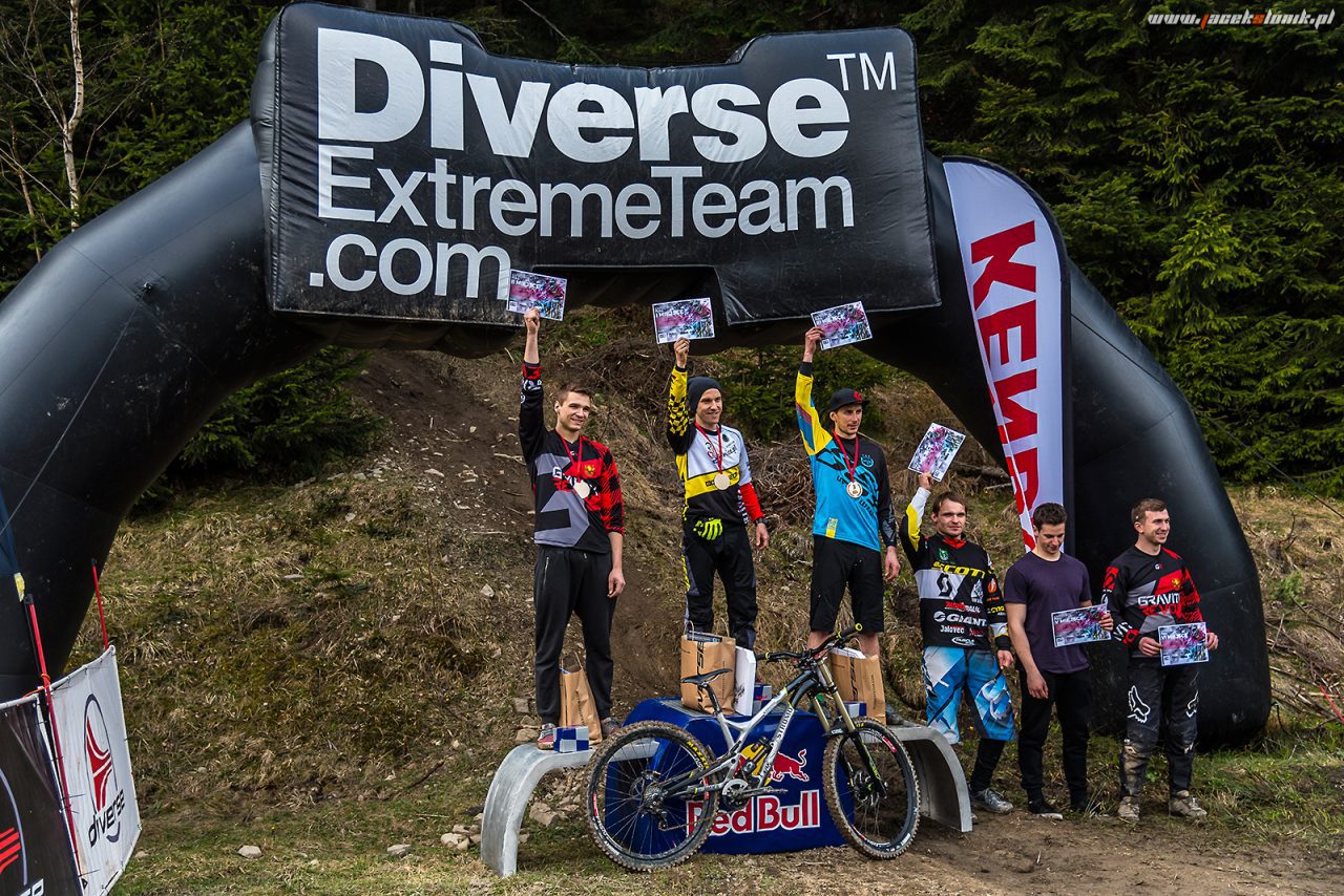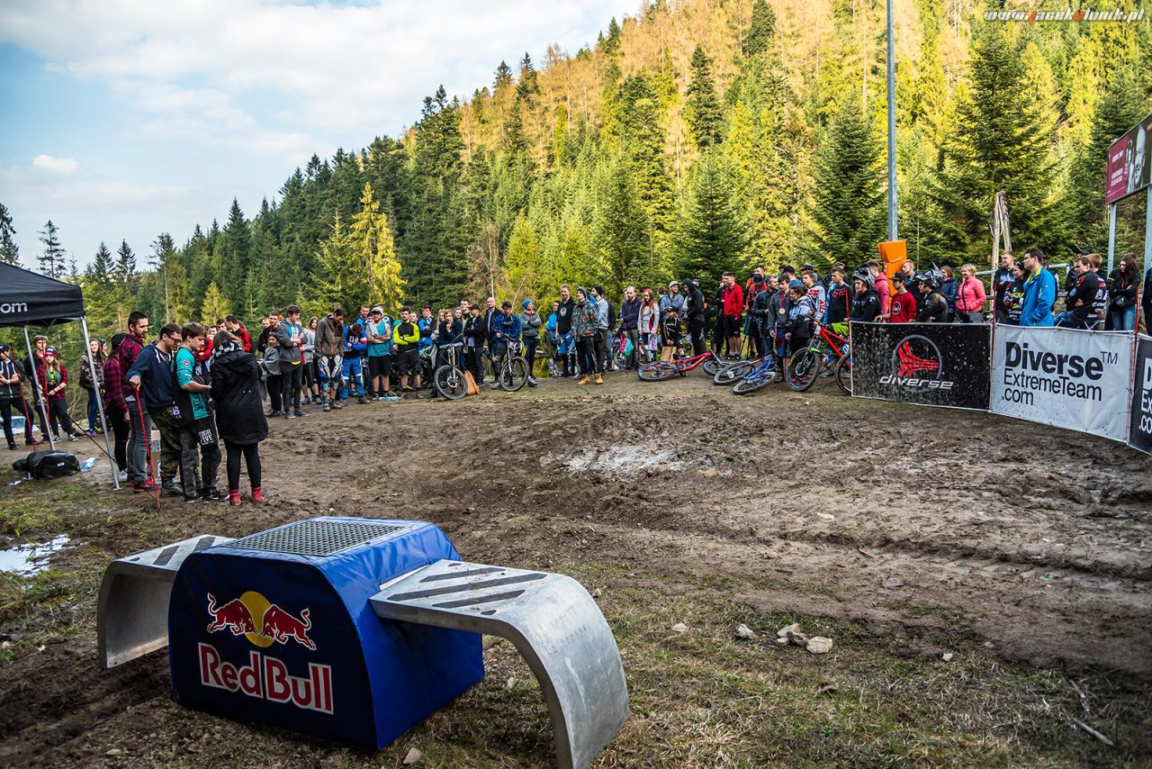 Zmiana miejscówy z Palenicy na Koninki moim zdaniem było świetnym, choć wymuszonym posunięciem. Wąsko, szybko, płynnie i dość długo – czego chcieć więcej? Myślę, że było to idealne miejsce na rozpoczęcie sezonu 2017. Oczywiście jak to na zawody przystało, nie mogło obyć się bez … deszczu i błota. Piątkowe opady śniegu zbiły trochę z tropu niektórych zawodników, pewnie niejeden zrezygnował z tego powodu ze startu. W sobotę od rana można było się pokąpać w błotku śmigając na trasie zawodów. Jak dla mnie była to świetna zabawa, a przejazd większości elementów był bardzo ciekawy i czasami bardzo zabawny. Po sobotnich treningach chłopaki rozpalili ognisko i można było sobie wspólnie pochillować po całym dniu śmigania.