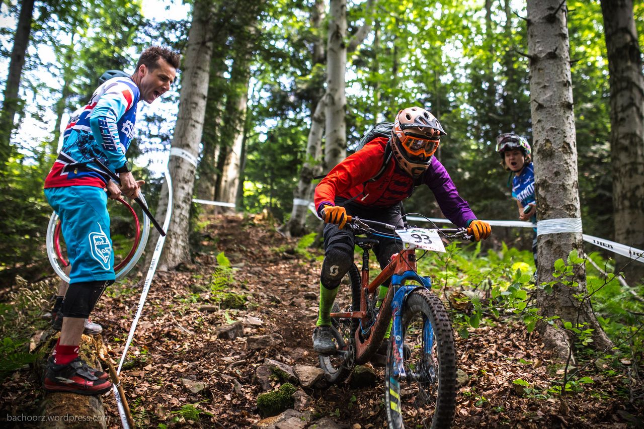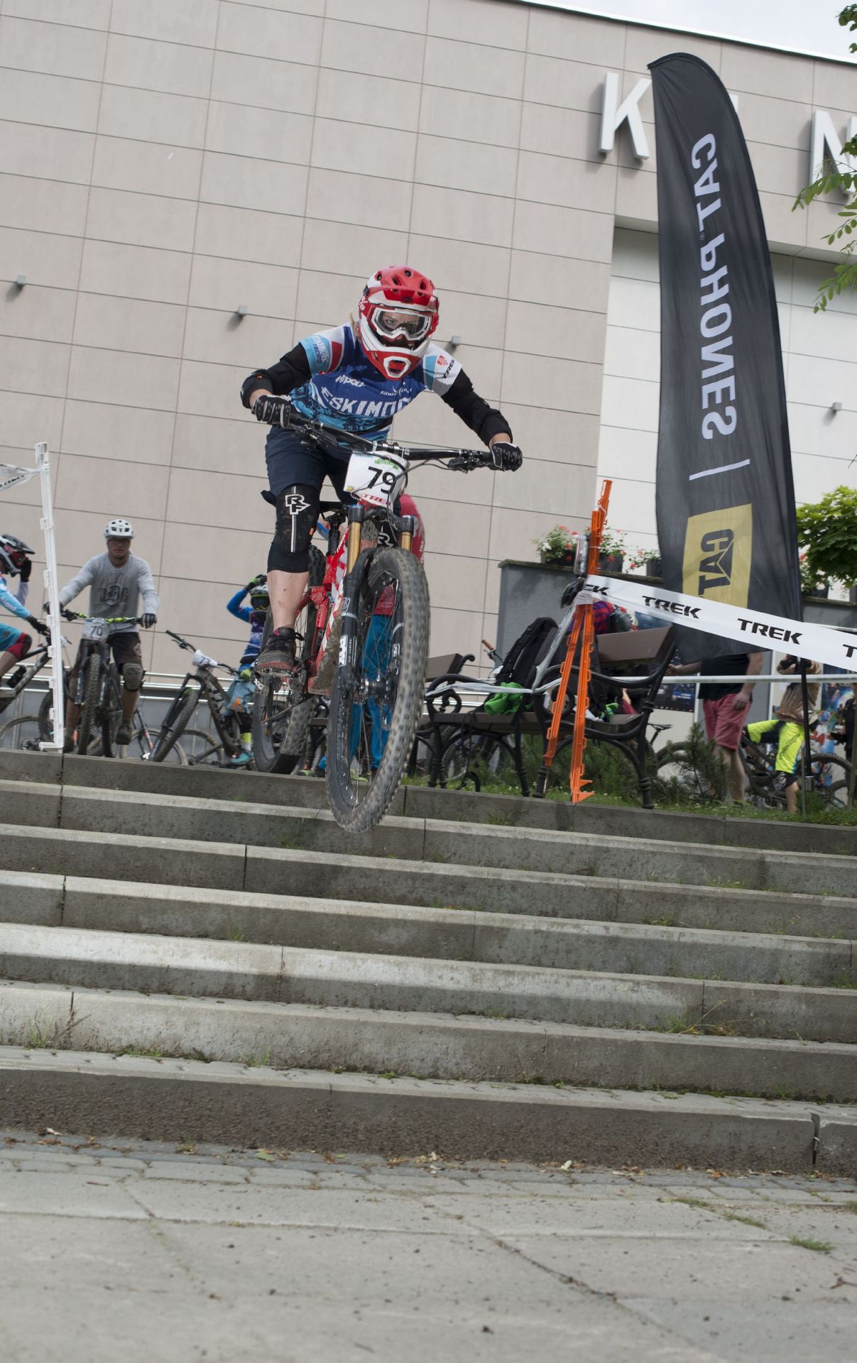 W ramach głównej rywalizacji, pierwszego dnia na zawodników czekały cztery górskie odcinki, startujące na zmianę z Lubonia Wielkiego i Krzywonia. O ile zjazdy z Krzywonia były znane przed zawodami, to trasy z ponad 1000-metrowego szczytu górującego nad Rabką pokonywane były on-sight, czyli bez wcześniejszej znajomości. Na trzech z czterech OS-ów najszybszy był Marek Konwa (TREK Bielsko Racing), który zakończył pierwszy dzień ścigania z bezpieczną, ponad 15-sekundową przewagą nad Marcinem Motyką (Marin Bikes Polska), który tego samego dnia rano wysiadł z samolotu po wakacjach… Ale to w końcu zawody dwudniowe, więc nie był to koniec walki! Rozstrzygający okazał się pierwszy odcinek drugiego dnia (zjazd on-sight z Grzebienia), na którym Marek przez błąd nawigacyjny stracił nieco czasu, kończąc odcinek na ósmej pozycji. Mimo zwycięstw na pozostałych dwóch odcinkach górskich (z Krzywonia i Lubonia) nie udało mu się odrobić straty. Ostatecznie po ponad 41 minutach spędzonych na ośmiu OS-ach w przeciągu dwóch dni, pierwszy na mecie zameldował się Marcin Motyka z przewagą… 75 setnych sekundy! Tak ciasnej rywalizacji chyba jeszcze w polskim enduro nie było. Trzecie miejsce na podium w elicie uzupełnił Patryk Talaga (IN Mogilany Cycling Team).