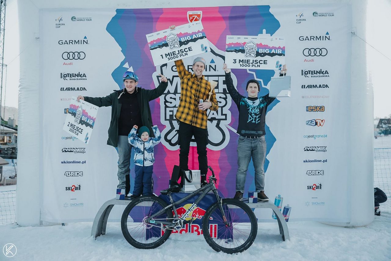 Ostatniego weekendu swój sezon na dużych kołach Dawid Godziek rozpoczął w świetnym stylu! Zdobywając złoto podczas Garmin Winter Sports Festival w kategorii MTB Dawid ponownie udowodnił, że radzi sobie świetnie nie tylko w dyscyplinie BMX. W zawodach udział wzięło 15 zawodników pochodzących z Polski, Węgier, Rosji oraz Ukrainy. Na drugim miejscu uplasował się Marek Łebek, a na trzecim stopniu podium stanął Yura Starosta. Zawody odbyły się na Kotelnicy Białczańskiej, a zawodnicy startowali tym razem na przeszkodzie zbudowanej ze śniegu, a nie standardowo z ziemi!