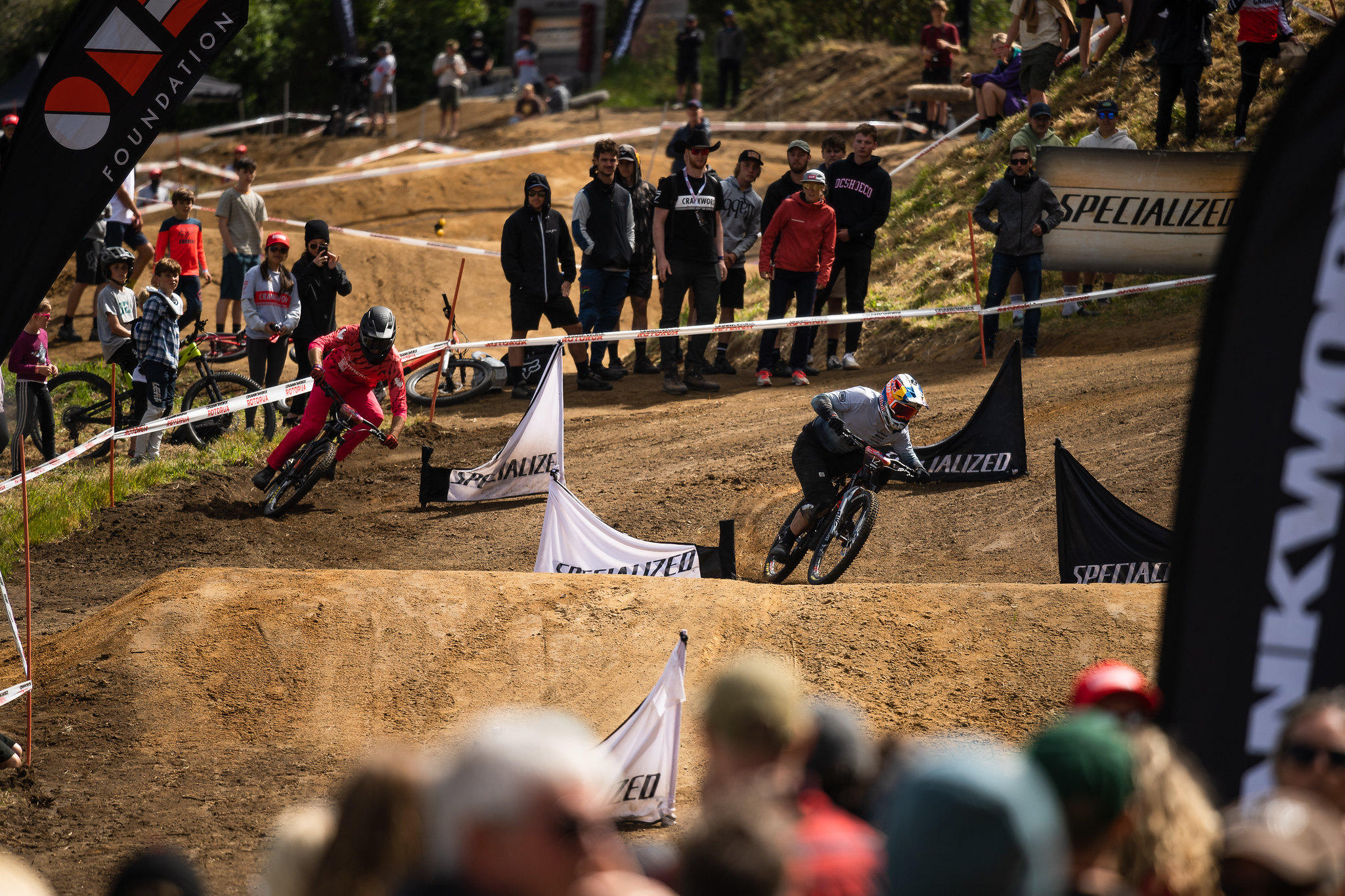 Dzień rozpoczął się od zawodów Specialized Dual Slalom Rotorua, gdzie zawodnicy musieli walczyć nie tylko z samymi sobą, ale również z pogodą, która delikatnie mówiąc nie jest zbyt łaskawa. Kwalifikacje dwa dni temu odbyły się na kompletnie suchej trasie, ale tym razem padający deszcz sprawił, że trasa zmieniała się z każdym kolejnym przejazdem.