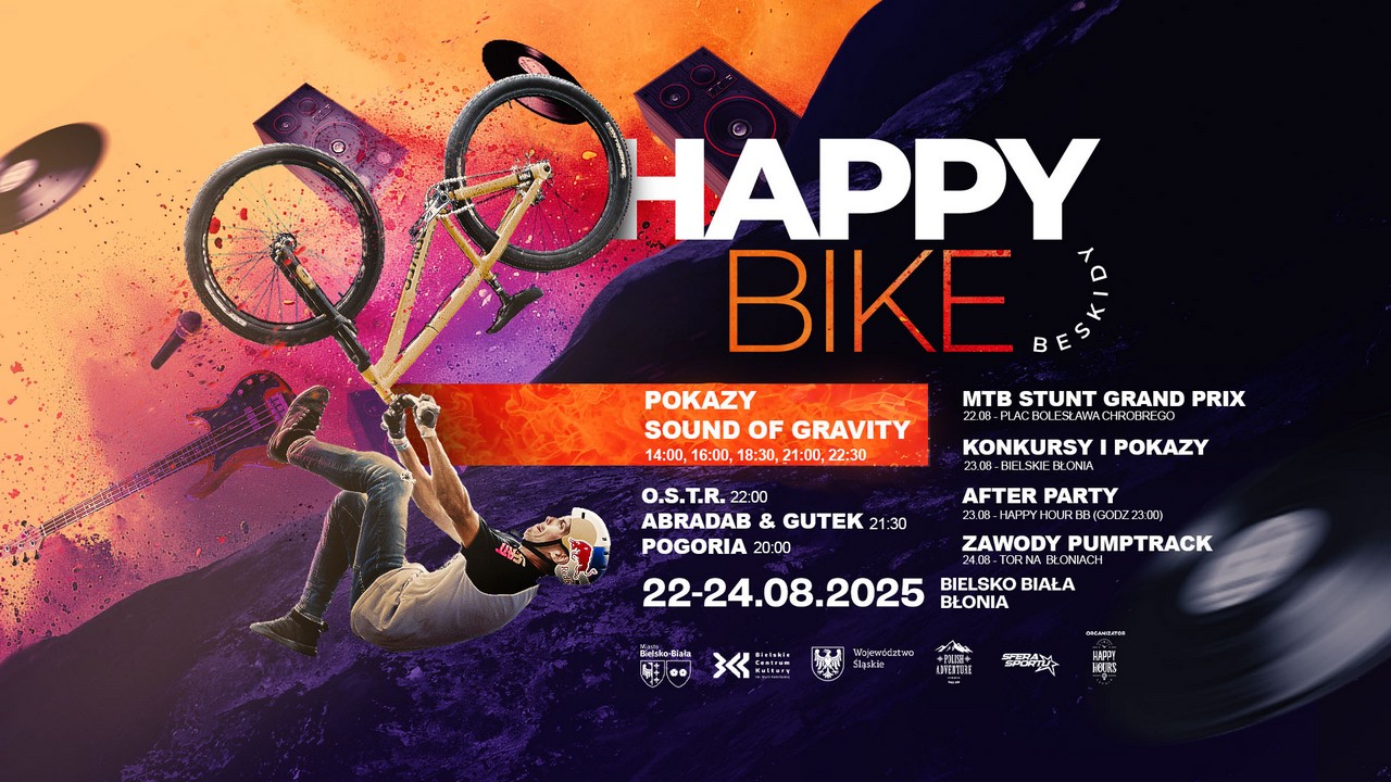 Trzy dni mocnej rowerowo-muzycznej zabawy w Bielsku-Białej! Happy Bike Beskidy nadchodzi z piątą edycją wyjątkowego wydarzenia, które elektryzuje nie tylko fanów rowerowych szaleństw ale i fanów doskonałej muzyki! Spektakularne pokazy rowerowe z z Godziek Brothers, zawody i contesty rowerowe, koncerty (O.S.T.R, Abradab & Gutkek, Pogoria) to tylko niektóre punkty programu bielskiego festiwalu.