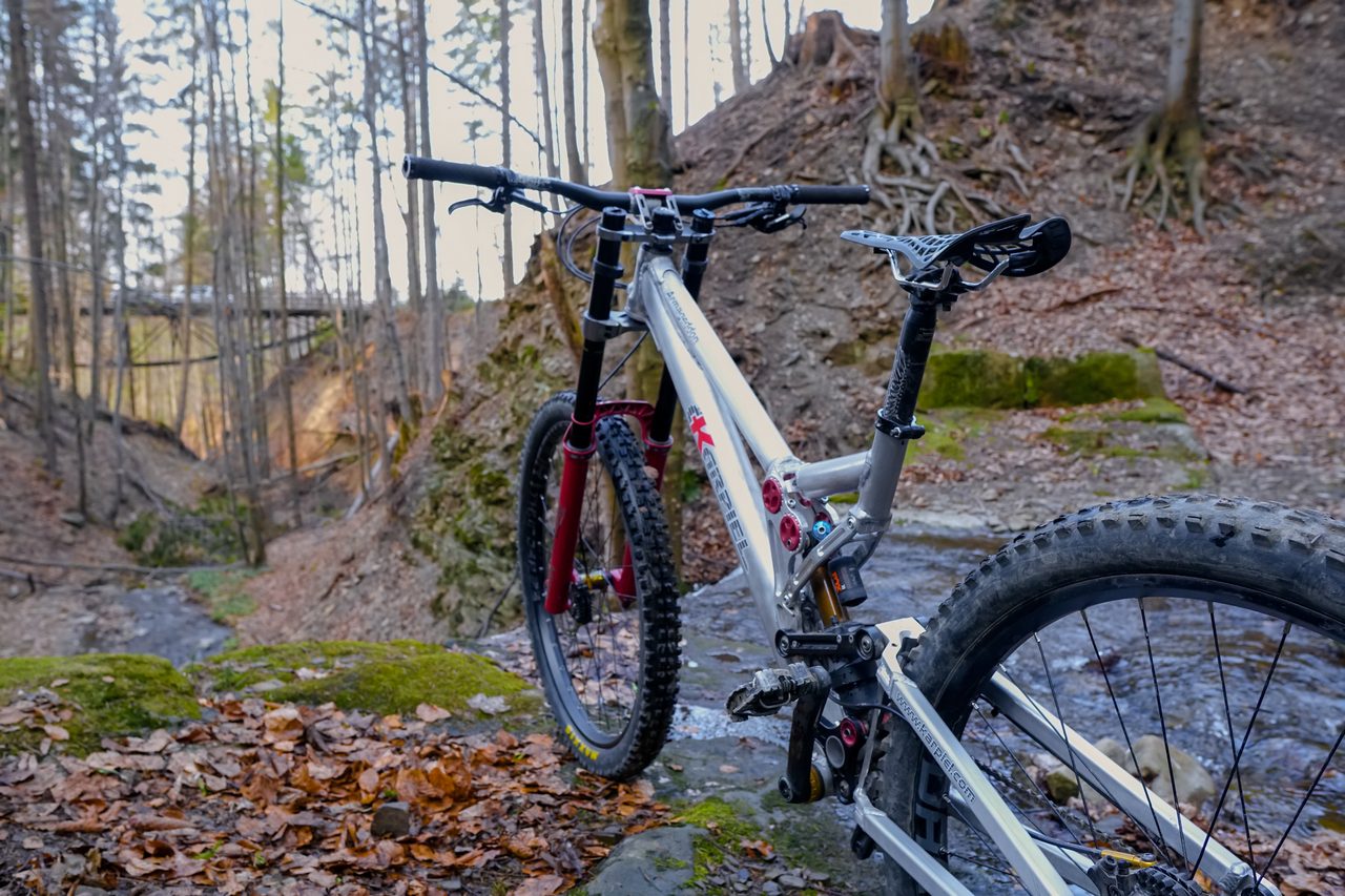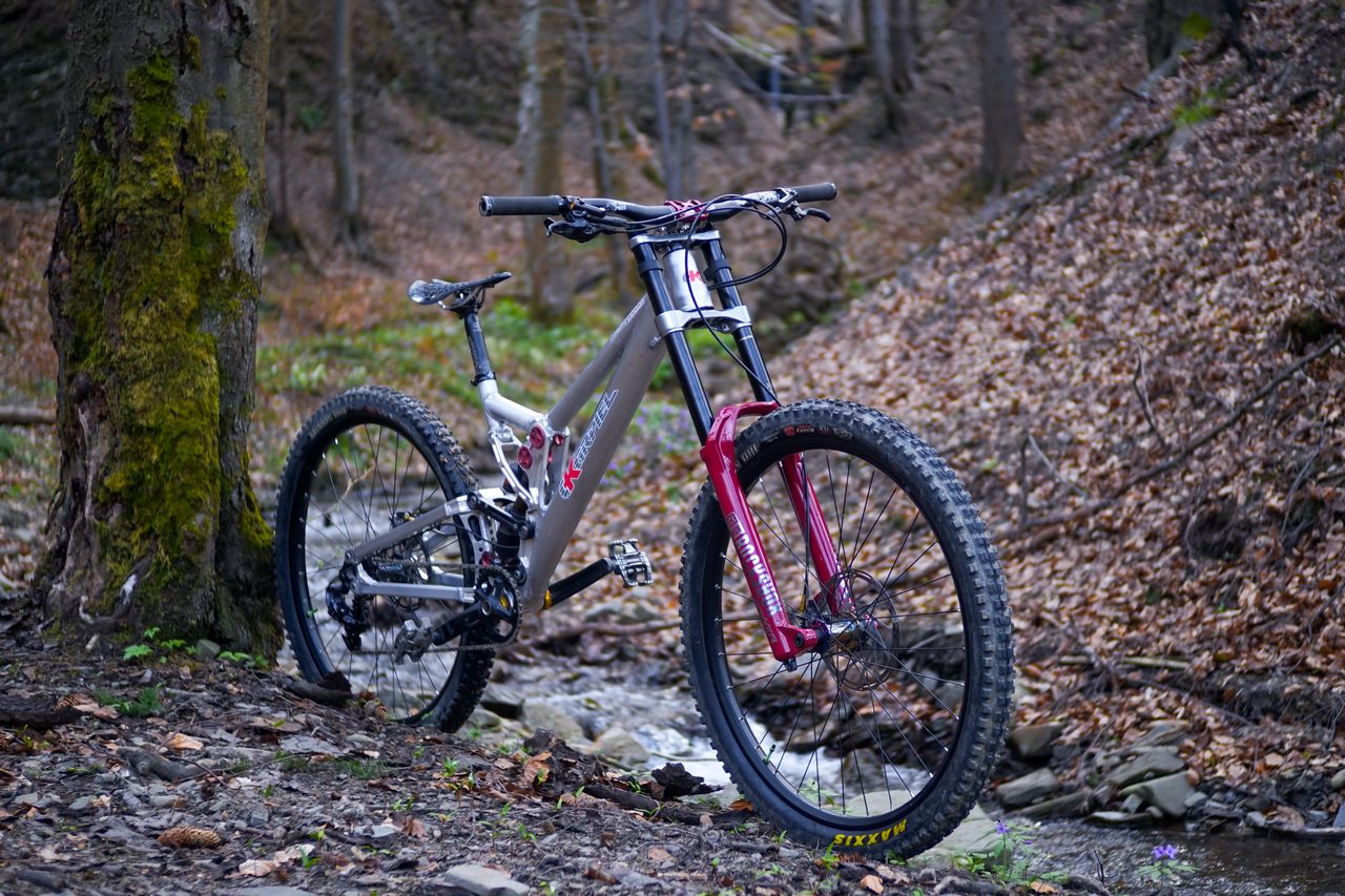 Nie sądziłem, że rower z 200 mm skoku będzie potrafił tak nabierać prędkość i ją utrzymywać. To po prostu niesamowite uczucie, podejrzewałem, że będzie dobrze, ale nie aż tak! Kąt główki i długość sprawiają, że granica błędu jest bardzo daleko. Ta granica jest tak daleko, że wchodząc w zakręt, czując te pokłady przyczepności, śmiejesz się, bo na małym kole by się tego tak nie zrobiło. Kamienie, których się obawiałeś przestają istnieć, bo Ty wiesz, że rower Cię obroni. To czego najbardziej się obawiałem to to, że rower może „tonąć” przez duży skok. Moje zaskoczenie było ogromne kiedy rower zaczął przeskakiwać wszystko co się da. Poczułem szaleństwo, którego nie czułem na Treku. Trek był tylko szybki i stabilny, a ten rower jest w dodatku szalony, bo w tej konfiguracji nie czuć dużego koła. Duże koło w ogóle mi nie przeszkadza i dokładnie taki rower sobie wymarzyłem.