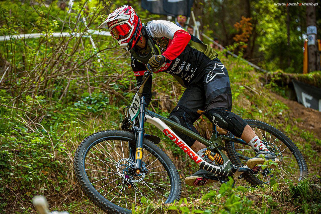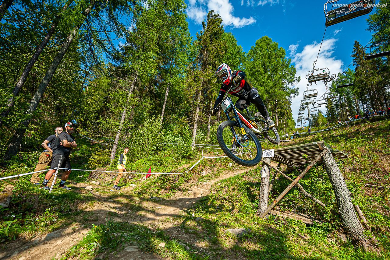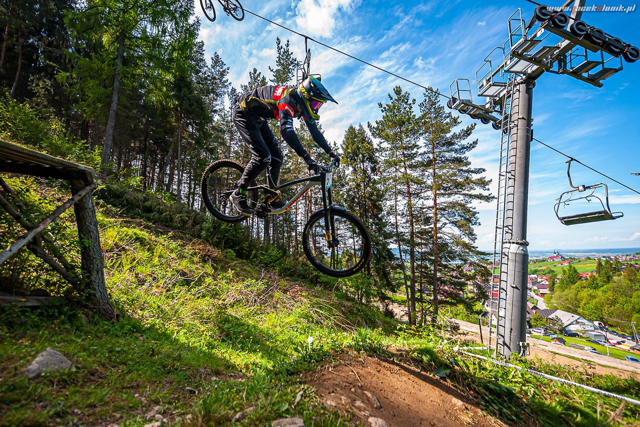 W tym roku postanowiłem wyciągnąć z tego weekendu jak najwięcej i porządnie się wyjeździć. W piątek objazd paru oesow enduro i treningi DH, sobota zawody enduro, zaliczenie dwóch treningowych przejazdów dh i luźny whip contest, na którym panuje mega atmosfera. W niedziele trzeba było się już spiąć i dobrze pocisnąć w DH zaliczanym do Pucharu Polski, na którym wszyscy się głównie skupialiśmy. Cały weekend jeździło mi się dość pewnie, płynnie i po luźnym przejeździe w eliminacjach byłem na trzecim miejscu. Niestety finały to już totalna odwrotność i wkradło się dużo chaosu, mój przejazd wydawał się dużo szybszy niż w eliminacjach, ale po kilku błędach i walce na trasie w rezultacie nie poprawiłem czasu.