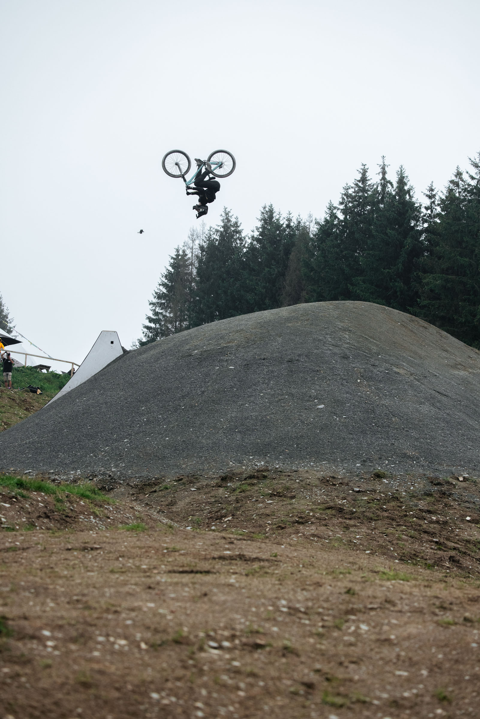 Chociaż Swatch Nines trwa od poniedziałku (14 sierpnia) to dopiero w piątek (18 sierpnia) udało się odpalić sesję na poduszce pneumatycznej. To szczególne wydarzenie rządzi się swoimi prawami, bo to zawodnicy i zawodniczki decydują co, jak i kiedy chcą robić. Pierwsze dni eventu były dość spokojne, głównie ze względu na dość słabe warunki atmosferyczne. Bike Park Green Hill, w którym zbudowano nową trasę był regularnie nawiedzany przez chmury, burze i wichury. Chociaż co jakiś czas na starcie trasy stawali zawodnicy, którym nie przeszkadzał ani deszcz, ani śliska, niepewna nawierzchnia, to jednak robienie progresu i odblokowywanie nowych sztuczek wymaga naprawdę idealnych warunków. Poduszki nie doczekał się między innymi Szymon Godziek, który w trzeci dzień imprezy próbował odjechać jednego z world firstów, ale zaliczył poważną glebę, która uniemożliwiła mu dalszą jazdę.