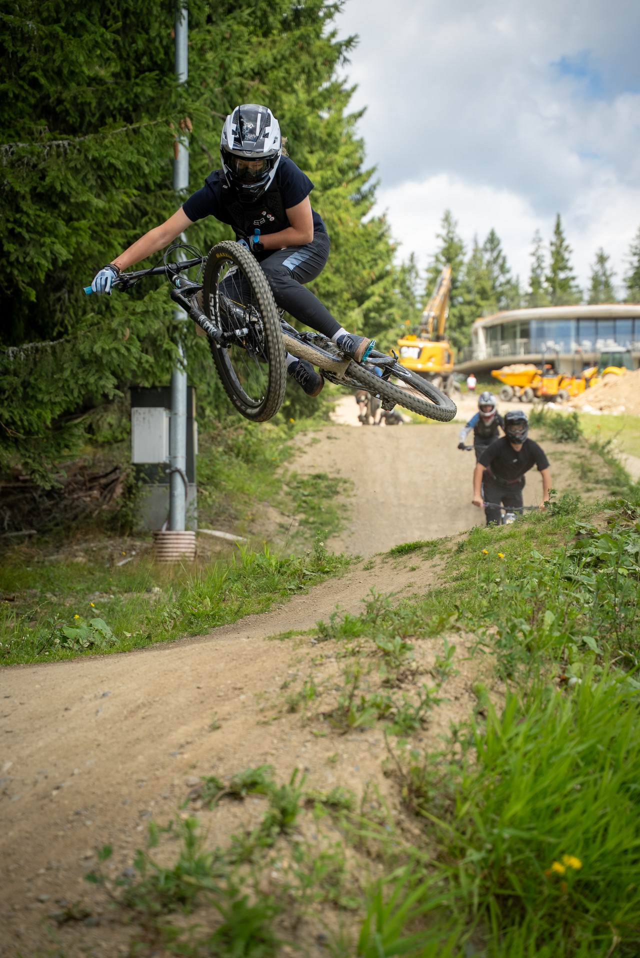 Zaskoczyły mnie dropy, które w większości budowane są w większym nachyleniu (nie zeskakujesz z płaskiej powierzchni, tylko ze zjazdu), co rzadko spotykam u nas. Także społeczność, która razem kopała, jeździła. Ludzie byli bardzo pomocni, wzajemnie się motywowano, od malutkich dzieci po osoby starsze. Jeździliśmy wsród wielu riderów światowego poziomu, np. z dziewczynami, które dzień wcześniej startowały w Rampage. Każdy był na równi, głodny progresu i adrenaliny. Tych tras nie potrafię porównać do żadnej miejscówki na której byłam, lecz nie byłam jeszcze w wielu krajach, np. Francji, gdzie trasy zapewne wyglądają inaczej niż w Polsce czy Czechach.