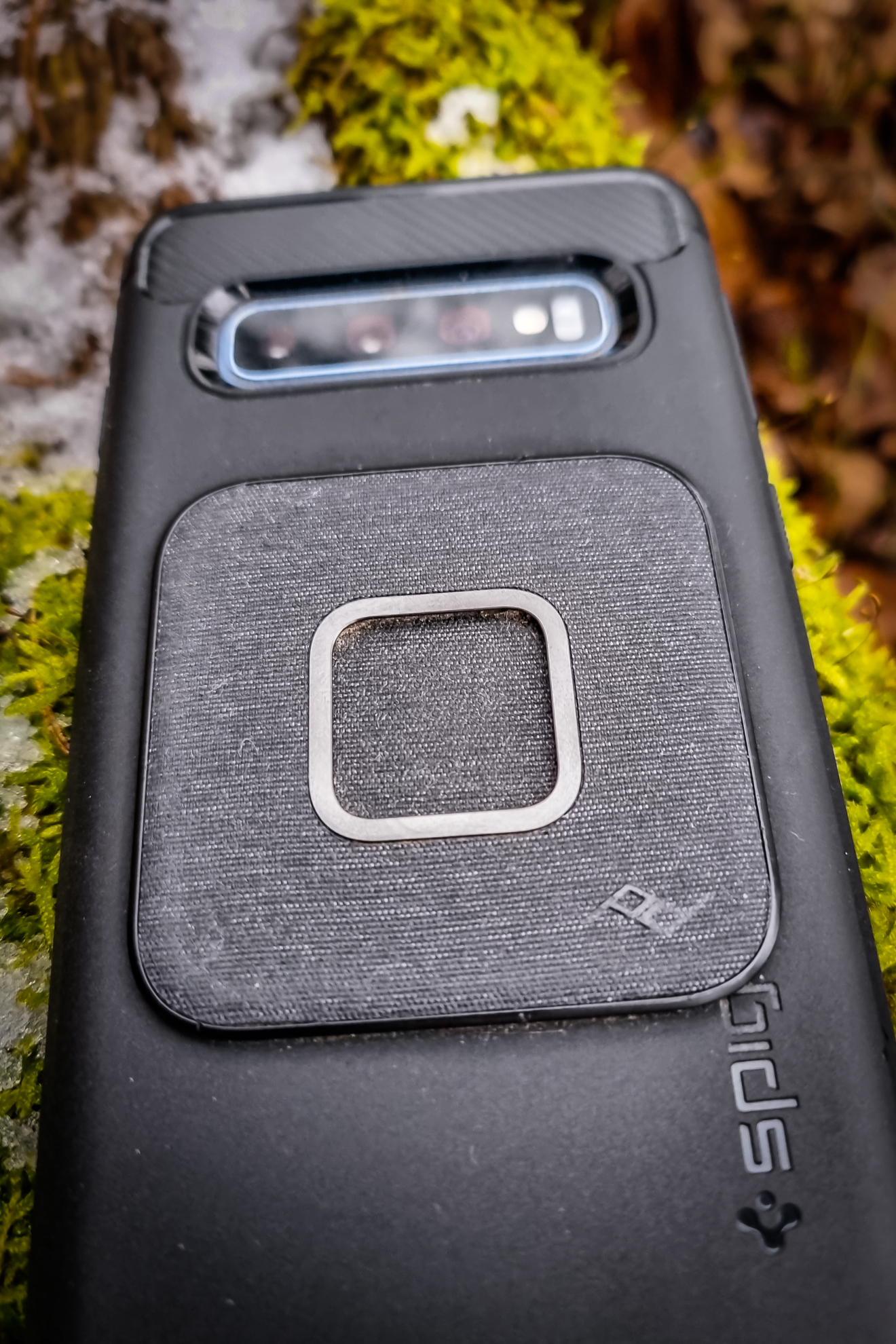 Uniwersalny adapter od Peak Design jest prostym patentem aby korzystać z dobrodziejstwa systemu Mobile i uchwytów SlimLink w sytuacji, kiedy do naszego telefonu niedostępny jest dedykowany case. Jest to bowiem specjalna naklejka, którą można przyczepić do dowolnego etui innego producenta. Jedyny warunek jest taki, że powierzchnia jego „pleców” musi być gładka. Ja swój adapter nakleiłem na standardowe etui. Pierwsze wrażenie było takie, że jednak nieco on odstaje i zastanawiałem się, jak taśma 3M, na którą jest on przyklejony, zniesie codzienne użytkowanie. Zdecydowanie nie chciałoby mi się zmieniać etui w zależności od tego, czy wyjdę na rower i będę korzystał z uchwytu Peak Design, czy nie. Na szczęście okazało się, że mocowanie jest tak mocne, jak deklaruje to sam producent i pomimo ciągłego użytkowania adapter trzyma się tak, jak powinien. Zewnętrzna warstwa to przyjemny w dotyku materiał oraz plastikowe obramowanie. Poza oczywistą zaletą korzystania z systemu Peak Design ciekawą i czasem przydatną opcją jest fakt, że dzięki magnesowi telefon mogę łatwo przyczepić do metalowej powierzchni. Ostatnio nocując w hotelu mogłem go na noc powiesić na drabince obok łóżka. Podsumowując, po sezonie ciągłego użytkowania adapter trzyma się case’a jak należy i jednocześnie idealnie trzyma telefon w dedykowanych uchwytach i nie tylko.