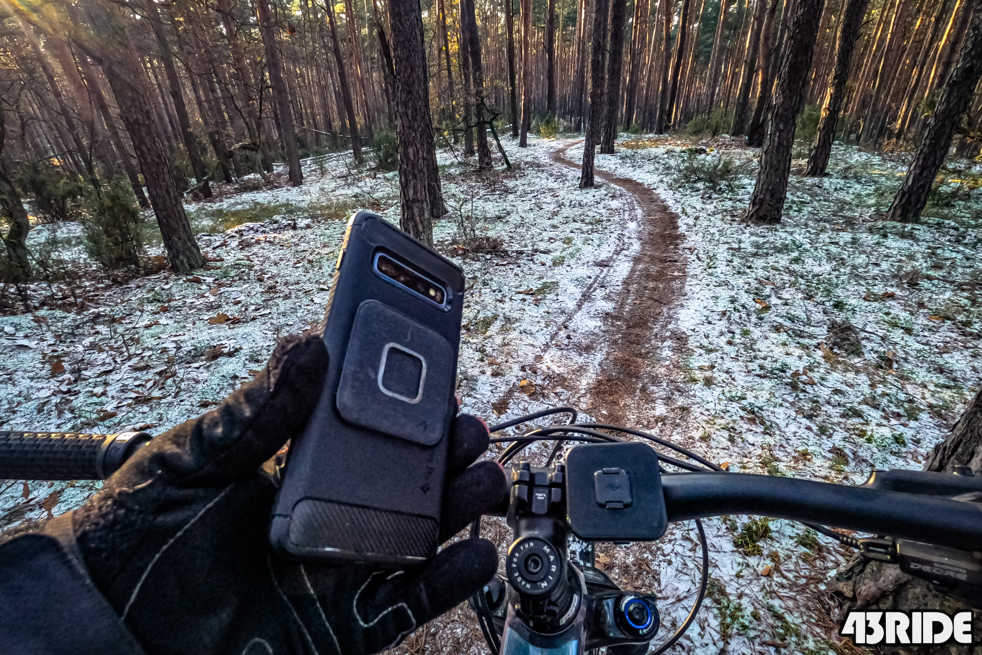 Universal Bar Mount jest to bardzo wygodne rozwiązanie zwłaszcza, że jego głowica obraca się o 360 stopni blokując w 32 różnych pozycjach. Daje to możliwość szybkiego obrotu wpiętego już telefonu o 90 stopni tak ,aby mniej wystawał poza obrys kierownicy, co minimalizuje możliwość zahaczenia go np. kolanem. Podczas jazdy w ostrym terenie uchwyt nieco pracuje na silikonowym pasku i cały telefon kiwa się delikatnie na boki. Nie jest to jednak nic wielkiego. Uchwyt nie wydaje żadnych większych odgłosów i nie odciąga uwagi od tego, co jest ważniejsze w danym momencie, czyli od pokonywanej trasy. Widziałem też opinie, że nawet lepiej aby uchwyt pracował, dzięki czemu amortyzuje to najmniejsze drgania, które mogą być szkodliwe dla samego telefonu. Zarówno mocowanie jak i mój smartfon przetrwały już ze mną bez strat różne wycieczki dłuższe i krótsze, konkretny łomot po kamieniach w Grecji czy szybką wycieczkę na trasy enduro w Trutnovie. Uchwytu używałem zarówno przy temperaturach powyżej 35 stopni, a ostatnio też podczas przymrozków i cały czas wszystko działa jak należy. Wiem, że mogę mu zaufać i że spokojnie jeszcze mi posłuży podczas wielu kolejnych rowerowych wypadów.