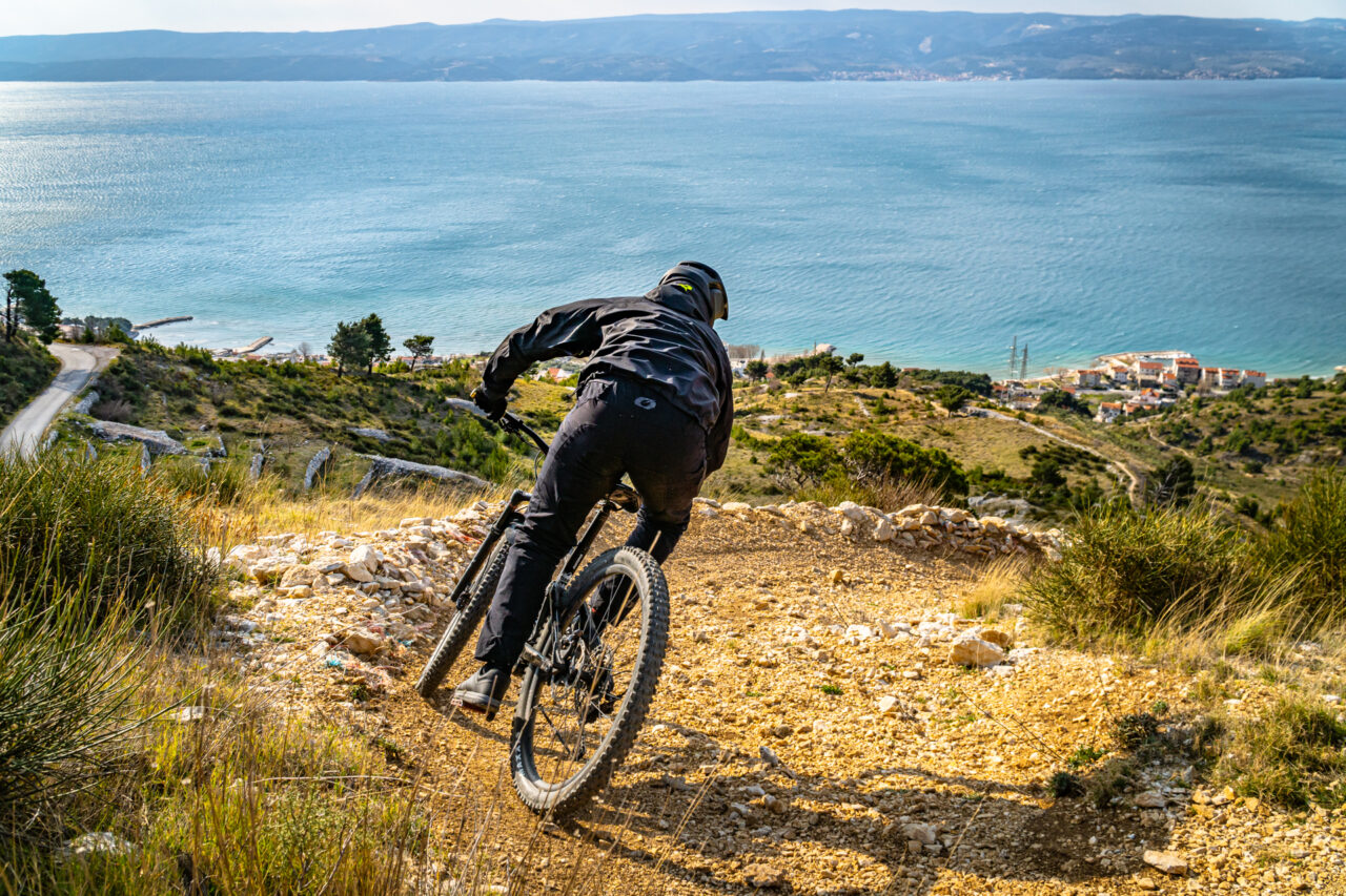 W lutym 2022 miałem okazję wybrać się na pierwszy większy wypad rowerowy do Chorwacji. Podczas eksploracji tras Enduro Perun nie było jeszcze upalnych temperatur znanych z lata. Był to więc pierwszy test całodniowej konkretnej jazdy enduro w spodniach O’Neal Legacy. Pierwszy dzień oparty był w większości na jeździe wspomaganej shuttle busem, natomiast drugi to konkretna wyprawa enduro z ponad godzinnym wypychem roweru na start trasy Imber. W obydwu wypadkach komfort był wysoki. Dzięki ściągaczom w pasie spodnie nie zjeżdżały z tyłka. Pod spodnie bez problemu zmieściły się dość duże ochraniacze O’Neal Redeema i taki komplet w terenie nie krępował żadnych ruchów. Temperatury w lutym w Chorwacji nie były zbyt wysokie do tego wiał bardzo silny wiatr, który momentami wręcz uniemożliwiał jazdę. W takich warunkach, pomimo że było sucho, długie spodnie sprawdziły się bardzo dobrze.