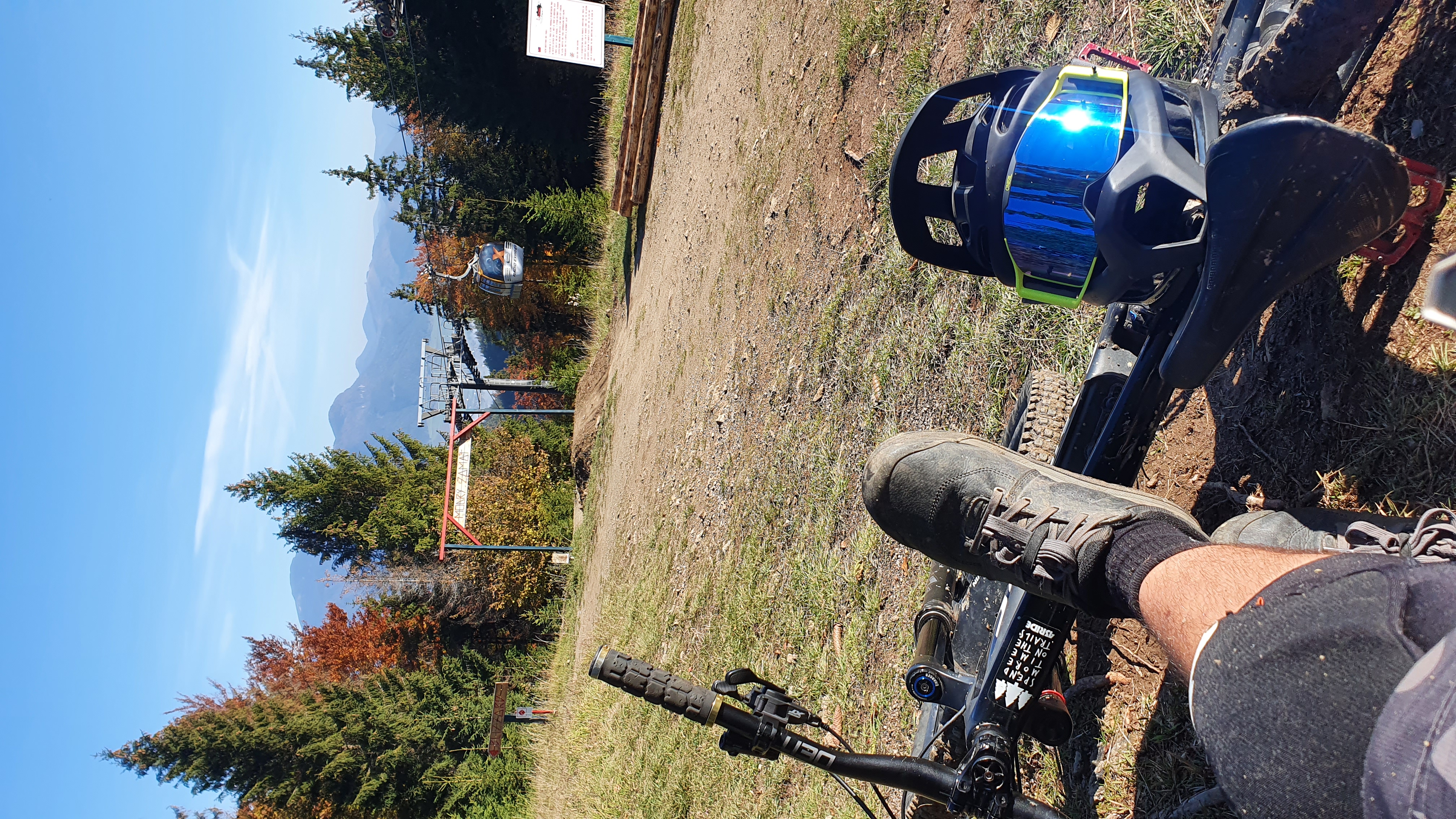 Lokalna ekipa chętnie oprowadziła mnie po najciekawszych sekcjach. Pierwsze wrażenia z jazdy w kasku były bardzo pozytywne, zwłaszcza że konstrukcja Specialized Gambit jest na tyle przewiewna, że nie wygłusza ona dźwięków z zewnątrz i nie odcina od świata zewnętrznego tak jak klasyczne full face’y. Spokojnie mogłem pogadać z przewodnikami nie ściągając kasku z głowy. Pomimo że czuć ten przedłużony daszek i wystającą szczękę, to jednak ogólne odczucia są bardzo zbliżone do poruszania się w standardowym kasku otwartym. Drugiego dnia jazdy czekał mnie konkretny enduro wypych na najbardziej polecaną trasę w okolicy. Na godzinne podejście przypiąłem po prostu kask do plecaka. Ale jest on na tyle lekki że praktycznie nie odczuwalny. Jadąc w dół skalistą granią znów czułem się pewniej mając świadomość że moją szczękę chroni full face. Gdybym nie miał Gambita to z pewnością wybrałbym się tu w otwartym kasku.