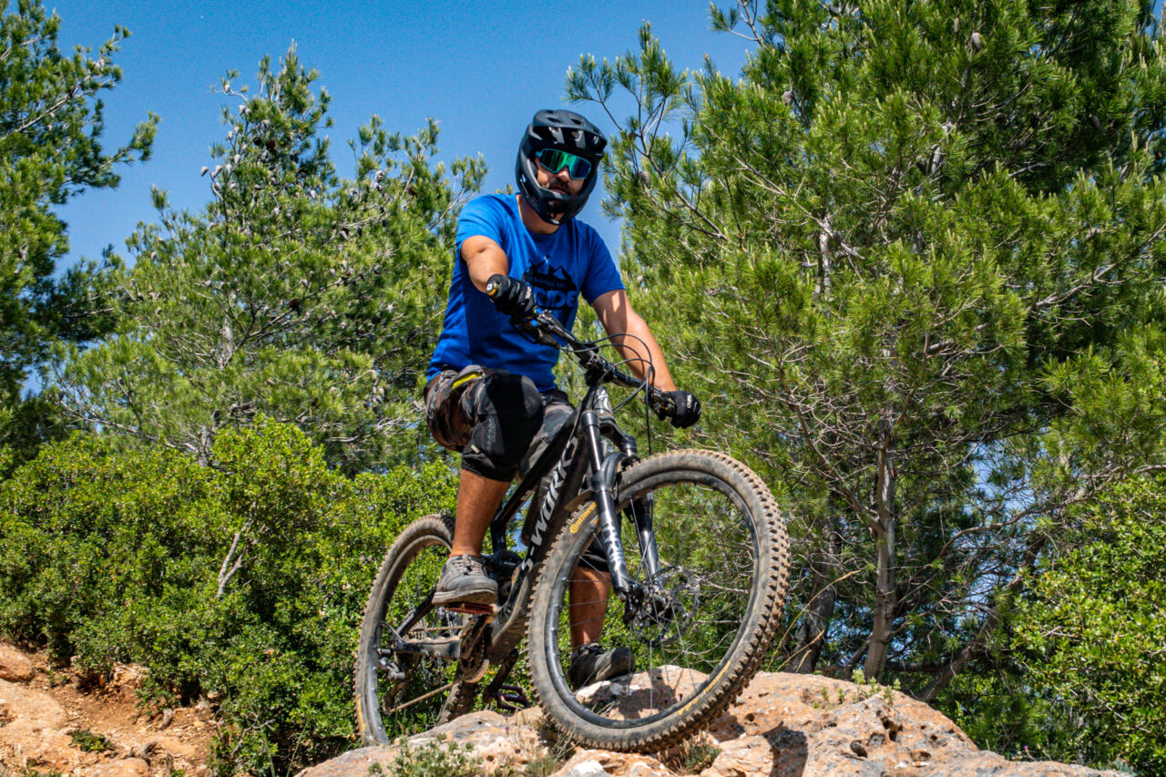 W lutym w Chorwacji nie bardzo miałem okazję sprawdzić jak dobrze działa wentylacja kasku, ponieważ temperatury były dość dalekie od upalnych. Prawdziwy test przewiewności odbył się jeszcze dalej na południe, gdy w maju wybrałem się na ponad miesiąc do Grecji. Mieszkając w Atenach miałem okazję sprawdzić ulubione trasy Phila Atwila i lokalnych wymiataczy (w tym zawodników startujących w Pucharze Świata DH). Możemy im pozazdrościć łagodnego klimatu ale też terenu i bardzo konkretnych tras na obrzeżach greckiej stolicy. Temperatury rzędu 34-36 stopni nie były niczym nadzwyczajnym, ale ja bardzo się cieszyłem że mam ze sobą kask full face i wręcz momentami żałowałem że nie miałem ze sobą zbroi. Napotkałem tam zarówno szybkie trasy ze sporymi hopami, po pokrytych pyłem skałach, a czasem też bardzo strome i techniczne elementy które wymagały sporej pewności siebie. Sporym ułatwieniem w poruszaniu się była opcja Shuttle busa, który śmigał nawet w ciągu tygodnia po pracy. Wtedy nawet nie myślałem o braniu otwartego kasku i Gambit był oczywistym wyborem. Ale zdarzyło mi się też kilkukrotnie, że wolałem wziąć full face’a nawet na jazdę w trybie enduro.