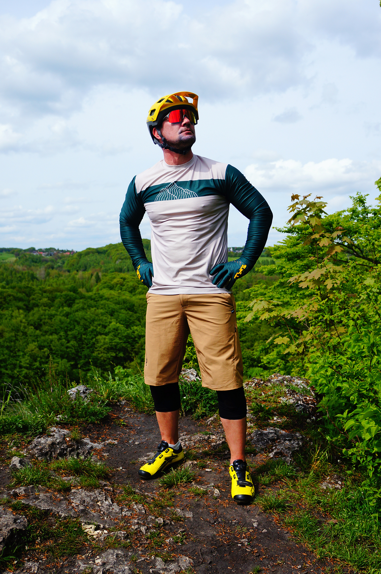 W tych szortach zwyczajnie się zakochałem, swoboda i komfort to słowa idealnie je opisujące. Bez problemu zmieszczą pod sobą nawet obszerniejsze nakolanniki. Wentylacja w kluczowych miejscach, poprzeczne kieszenie, w których łatwo zapomnieć o przewożonym telefonie bo nie czuć go w trakcie jazdy. Niezbyt głębokie kieszenie boczne przeznaczono na sam nie wiem na co, acz kieszeń na plecach sprawdza się bezbłędnie no i ten piaskowy kolor! Ekipa TYGU lubi takie eksperymenty mieszania funkcjonalności z designem i ja również.