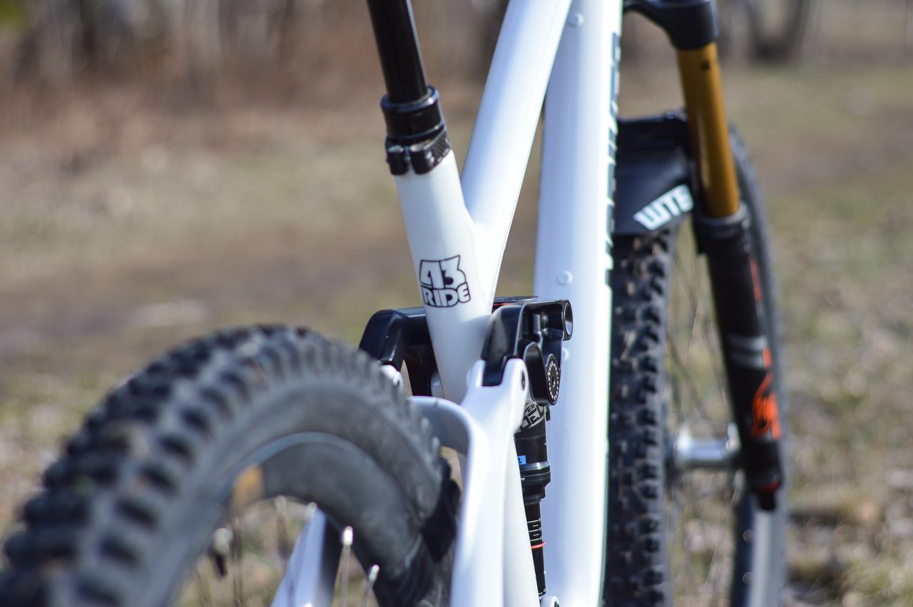 - logo 43RIDE – drobny akcent na rurze podsiodłowej