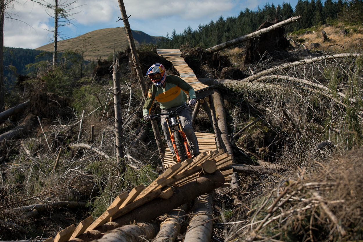 Kiedy sztorm Darragh przetoczył się przez dolinę Dyfi oraz Walię, zrównał z ziemią całe połacie lasu. Drzewa i gałęzie były połamane, a cały teren zamienił się w plątaninę drewnianego gruzu sięgającą miejscami kilku metrów. Nawet chodzenie po tym terenie wydawało się niebezpieczne, a jakakolwiek próba jazdy mijała się z celem.