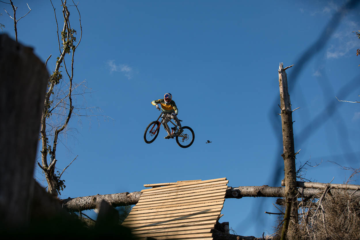 Kilka miesięcy później, Gee Atherton powrócił na najbardziej zniszczone zbocze i zaczął budować linię, wykorzystując to co zostawiła po sobie burza. Początkowo miał być to pojedynczy element, a potem przerodziło się to w cały projekt zbudowany z powalonych drzew. To była jedna z najtrudniejszych budów w karierze Gee. Momentami tworzenie trasy z połamanych drzew była bardziej niebezpieczna niż sama jazda po gotowym projekcie.