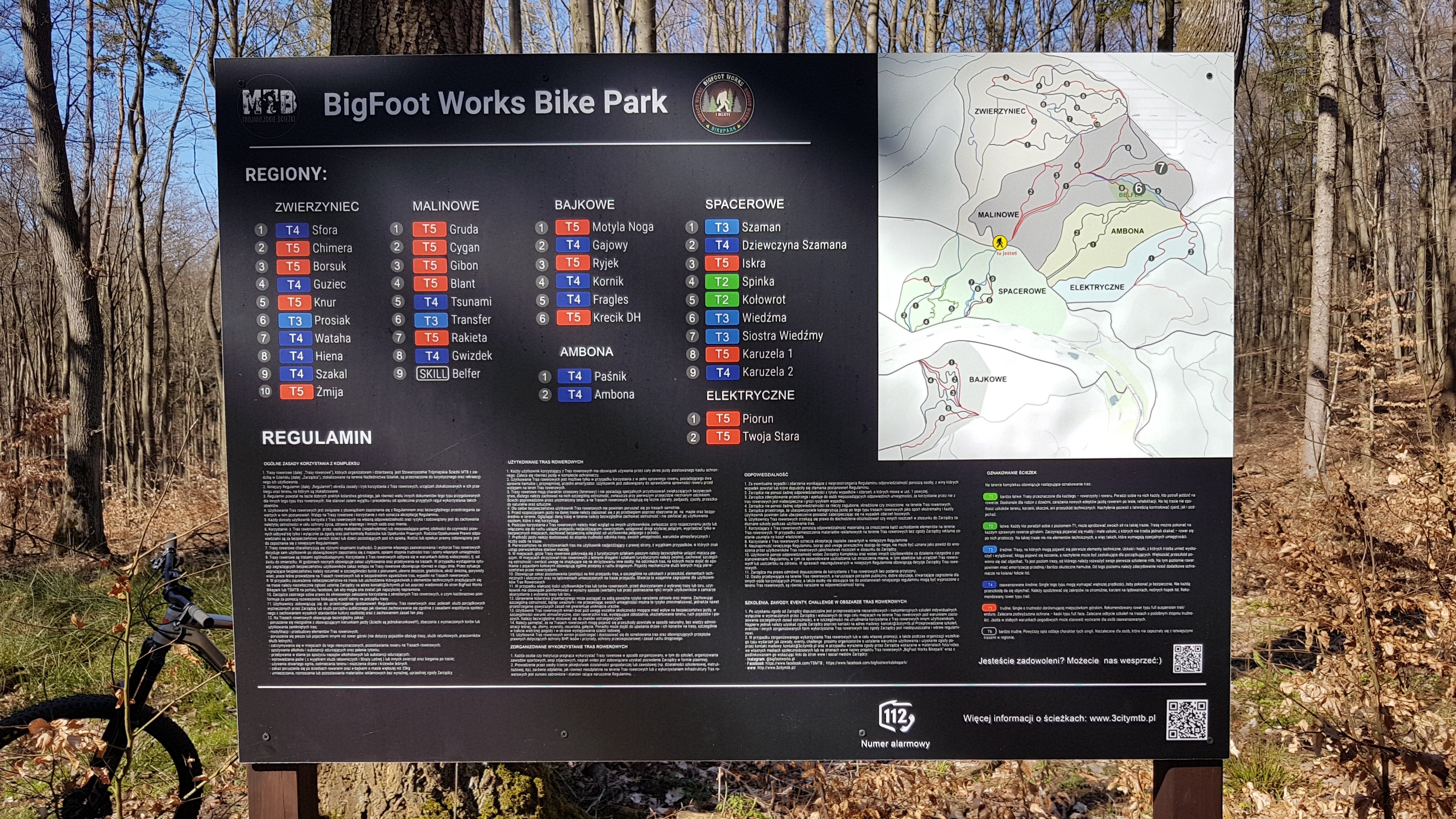 W tym momencie trasy kompleksu Big Foot Works przeznaczone są w większości dla średniozaawansowanych riderów. Cały kompleks podzielony jest na sześć regionów – Zwierzyniec, Malinowe, Elektryczne, Ambona, Spacerowe i znajdujące się po drugiej stronie obwodnicy – Bajkowe. Ich nazwy nijak się jednak mają do ich trudności. Ich długość to średnio między 200, a 700 m, jednak są mocno najeżone atrakcjami więc nie sposób się na nich nudzić.