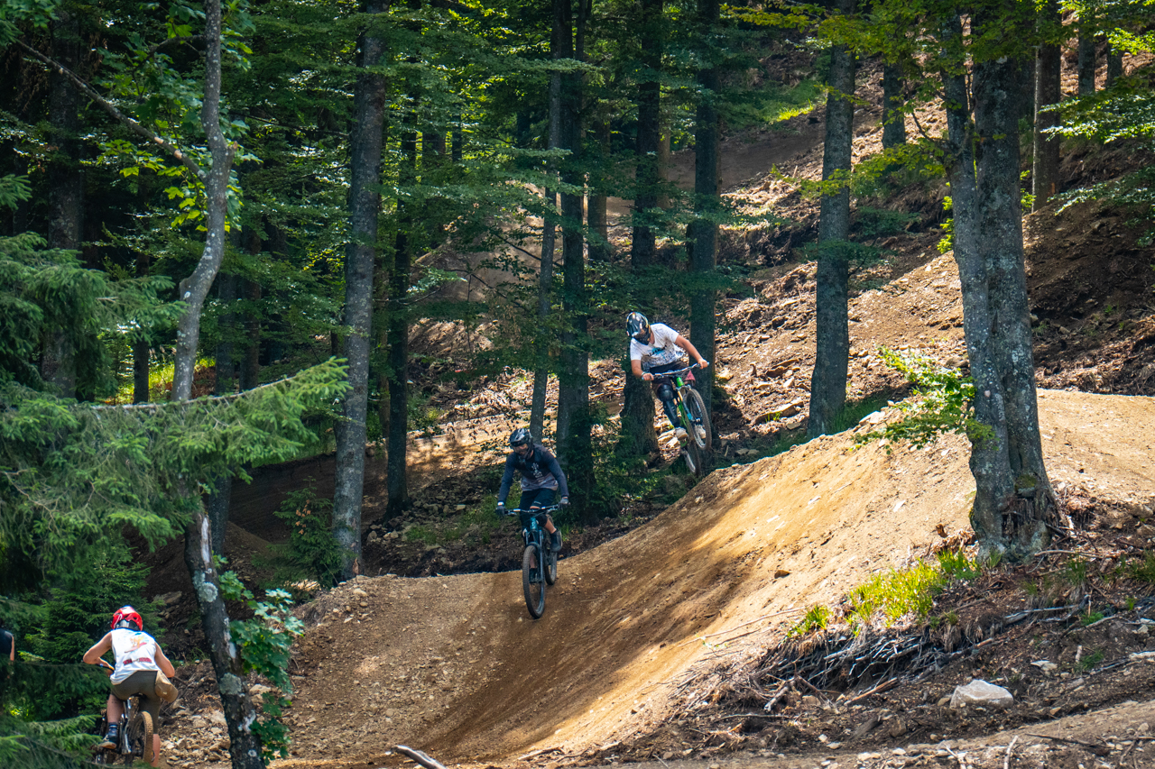 Podsumowując tras do wyboru jest dużo i o różnym charakterze, jednak trzeba też wspomnieć że są one stosunkowo krótkie. Większość z nich to przejazd na ok 2-3 min. Warto jednak zaznaczyć, że jak już wjeżdżamy na trasę, to nie ma tam nudnych momentów czy dojazdówek, gdzie nic się nie dzieje. W sumie mamy tu do dyspozycji 11 km przygotowanych zjazdów. Fajnie że nawet krótkie łączniki są napakowane przeszkodami. Praktycznie wszystkie trasy powstały od nowa pod koniec 2024 i na początku 2025 roku, więc w lipcu wszystko było świeże. Ulewy podczas drugiego dnia festiwalu nie ułatwiały oblatywania świeżych przeszkód. Miejscami było zbyt miękko. Z drugiej strony trasy naturalne to były świetne świeże zjazdy, czasem jeszcze pełne ściółki. Wiadomo że z czasem teren pod kołami się ułoży i pewnie będą wymagane poprawki. Warto też jednak zaznaczyć, że ekipa shaperów, Batt Crew, będzie opiekować się miejscem przez cały sezon letni. Dzięki temu wszystkie trasy powinny być utrzymywane na bieżąco. Zdecydowanie warto podkreślić, że niezależnie czy są to flow traile, czy linie o bardziej naturalnym charakterze, to wszędzie czuć tu bardzo dobrą płynność przejazdów i flow. Już od pierwszych przejazdów można się dobrze bawić i budowniczym udało się uniknąć przeszkód czy linii, które wybijają z rytmu.