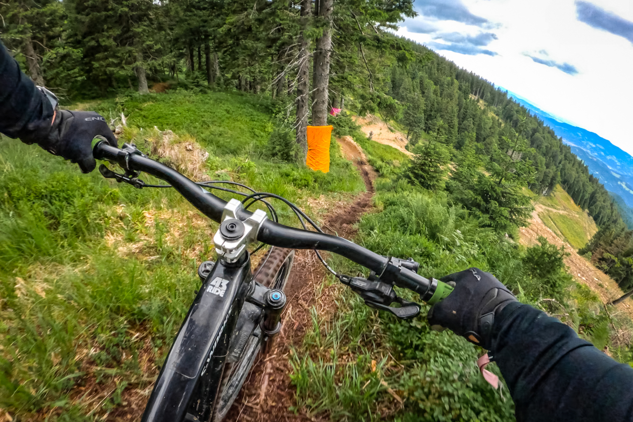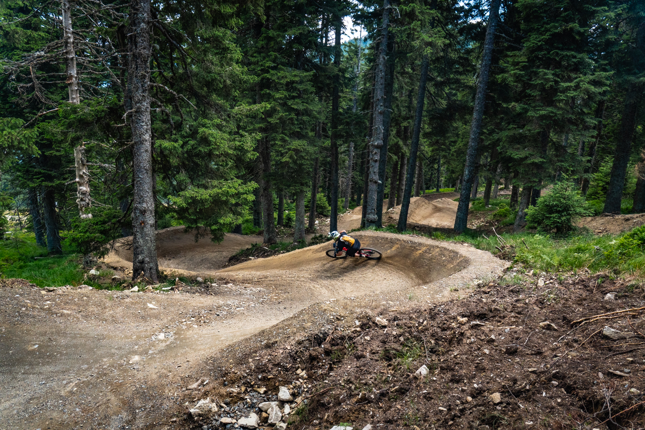 Kolejna strefa w bike parku Kope to Velika Kopa. Są to trasy, które zjeżdżają na drugą stronę góry niż te w strefie Pungart. Tutejsze zjazdy obsługuje krótki wyciąg talerzykowy wyposażony w system Easy Loop. Planowo do dyspozycji będą tu 3 trasy, w lipcu otwarte były 2 z nich. Tak na prawdę są to takie krótkie łączniki do dalej położonych stref, ale pomimo że krótkie to potrafią dać sporo zabawy! Fajnie, że pomyślano nawet o takich krótkich sekcjach i nie trzeba dojeżdżać zwykłą szutrówką.