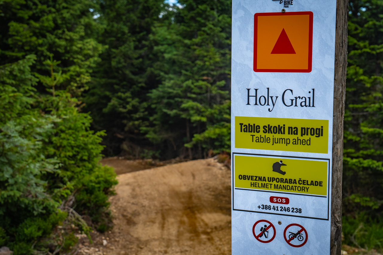 Trasa Holy Grail to kolejny budowany maszynowo flow trail. Pomimo, że większość przeszkód to stoliki to oznaczony jest jako trasa dla zaawansowanych. Rozmiar niektórych przeszkód jest już duży i żeby ładnie wszystko polecieć, trzeba trzymać wysoką prędkość. Niestety czuć było że trasa była świeża i trochę zbyt miękka, żeby w pełni rozkoszować się lotami na wszystkich hopach. Jednak jak już cała linia siądzie to kilka drobnych poprawek i osoby które lubią latać na rowerach, będą się tu świetnie bawić.