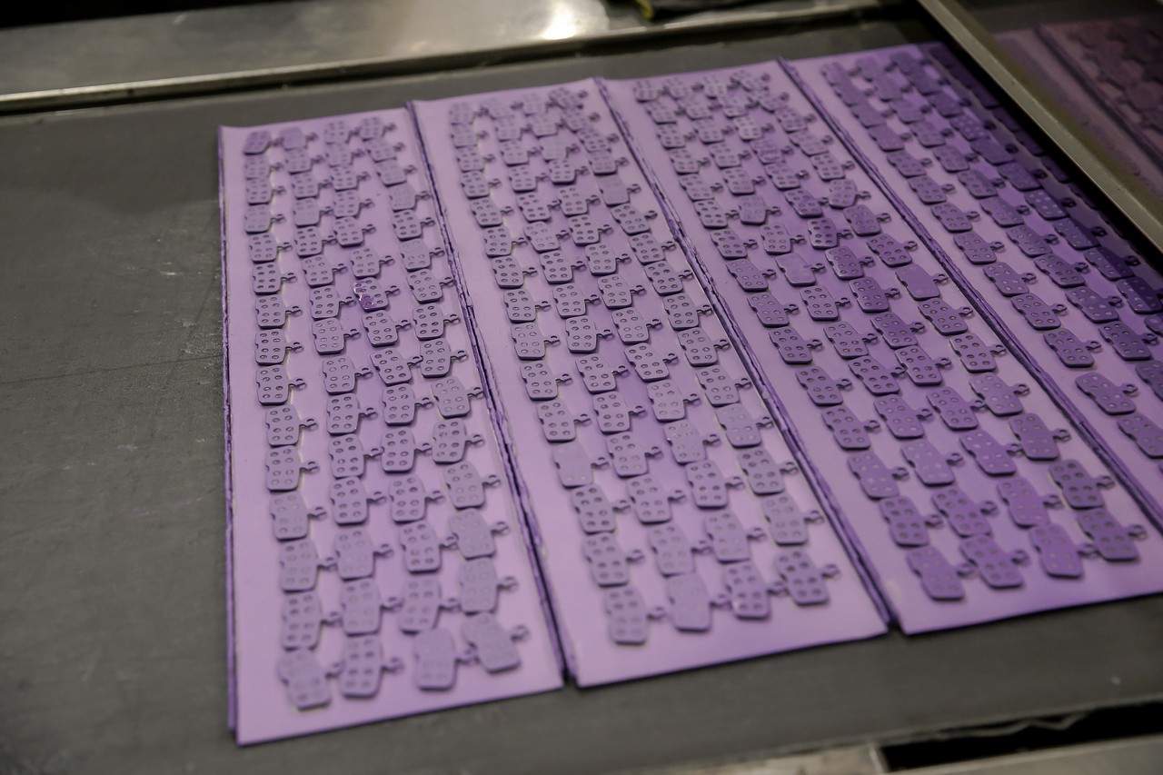 Sama produkcja klocków hamulcowych rozpoczyna się od stworzenia odpowiedniej mieszanki materiału ściernego. W przypadku pół-metalicznych klocków używanych zarówno w motocyklach jak i rowerach, jest to mieszanka nawet 20 składników: różne związki chemiczne, włókna, żywice, grafit, ceramika i inne metale. Tu warto zaznaczyć, że w Galferze dokładny skład mieszanek znają tylko dwie osoby w całej firmie.