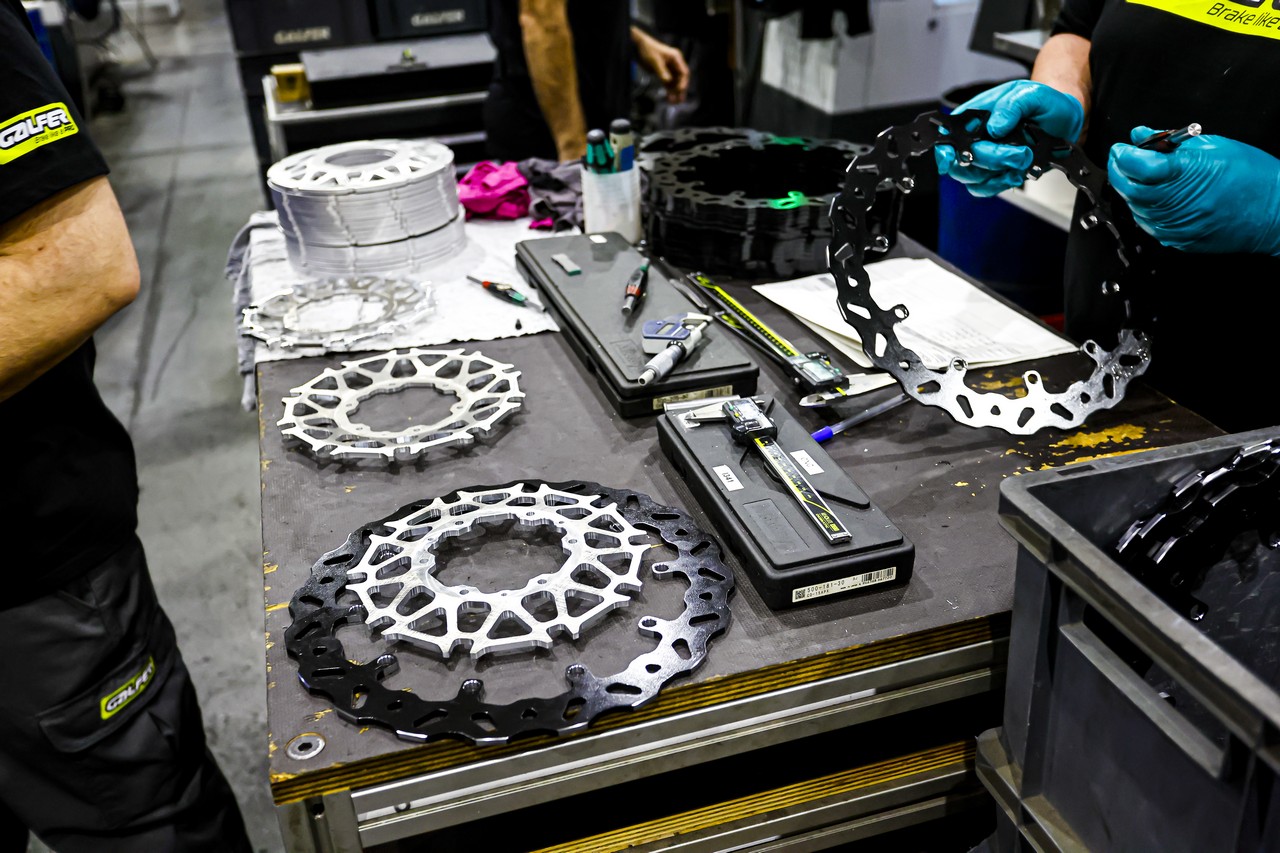 Co ważne, wszystkie komponenty produkowane przez markę, wytwarzane są w fabryce na miejscu (budynek o powierzchni 6000m2), a to oznacza prawie w pełni europejską produkcję. Dlaczego prawie? Otóż chodzi o materiał. Odpowiednie stopy stali, które wykorzystuje Galfer, w zdecydowanej większości są importowane z Chin, ale firma ciągle poszukuje kolejnych dostawców z Europy, przez co udział „lokalnej” stali ciągle rośnie. W kwestii samej technologii, to Galfer wytwarza wszystko na miejscu, od wycinania, aż po ostateczny montaż, lecz są dwa procesy, które muszą wykonać przy użyciu firmy zewnętrznej: obróbka cieplna oraz malowanie.
